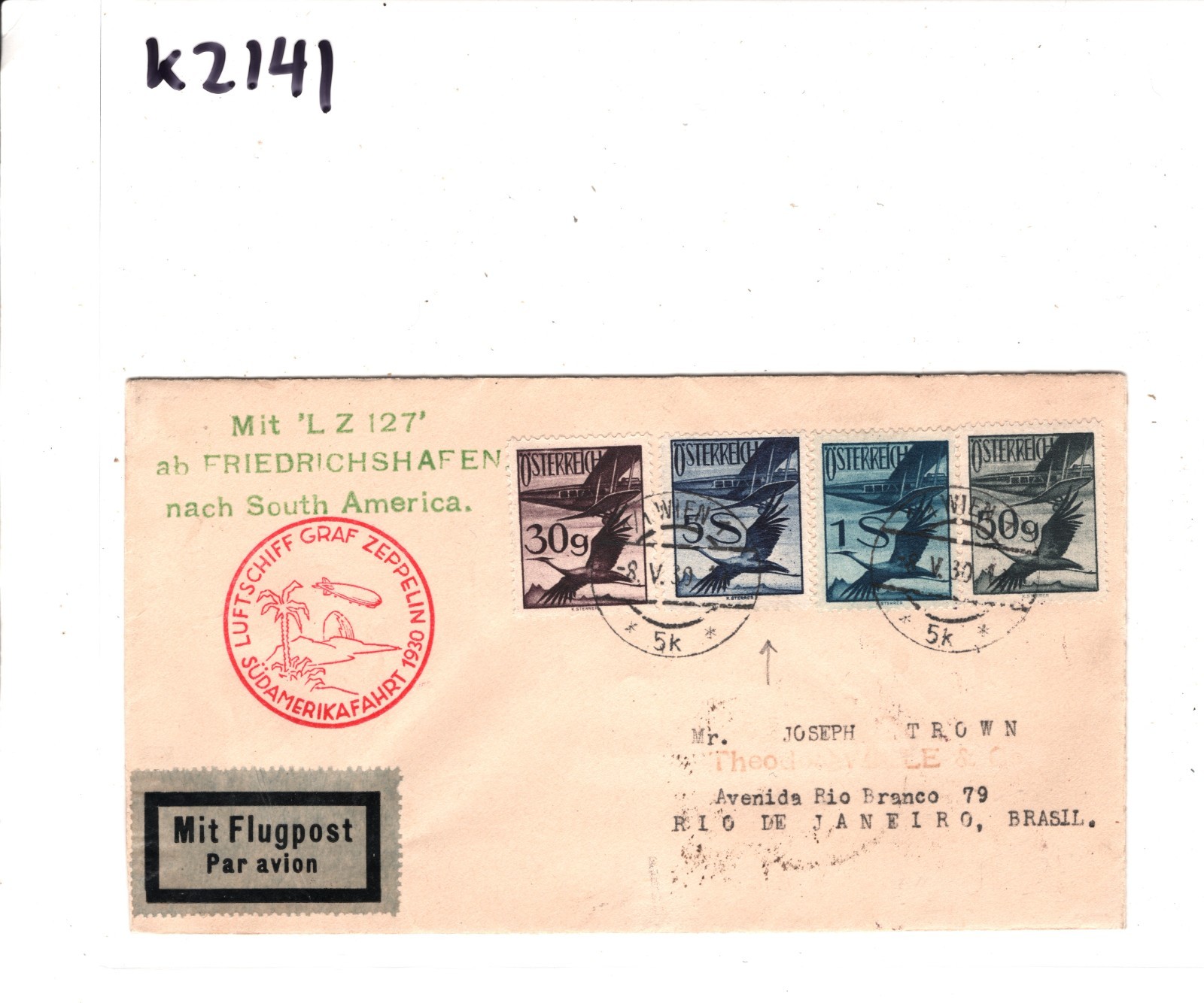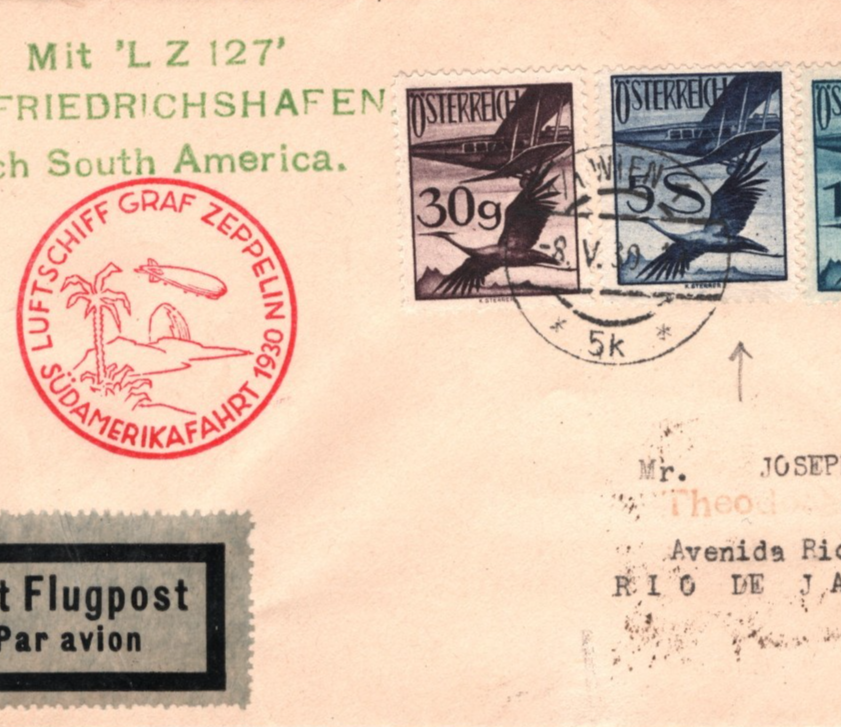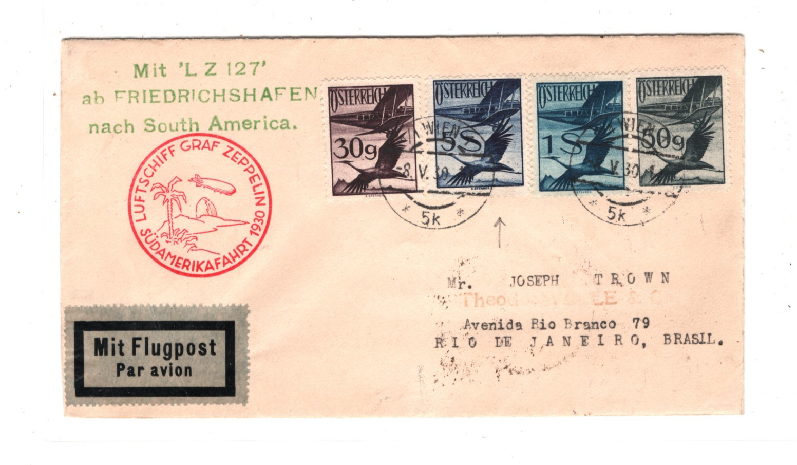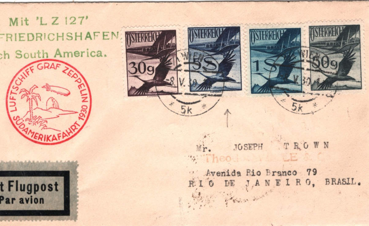 GRAF ZEPPELIN AUSTRIA Air Mail 5s Cover 1930 SÜDAMERIKAFAHRT BRAZIL Rio de Janeiro Vienna KZ141