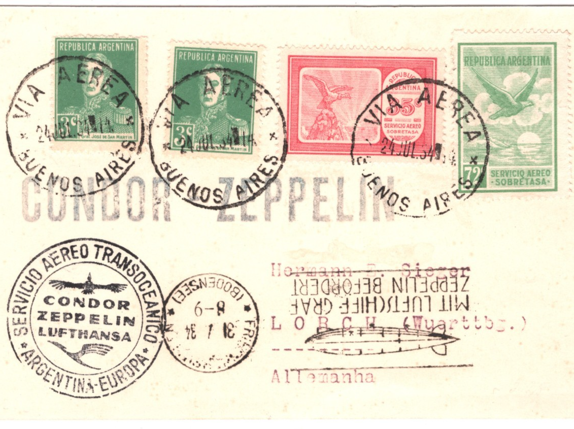 GRAF ZEPPELIN ARGENTINA Air Mail Card CONDOR Buenos Aires GERMANY Lorch 1934 KZ462