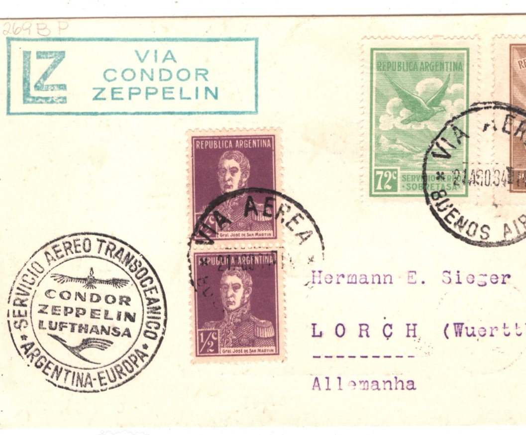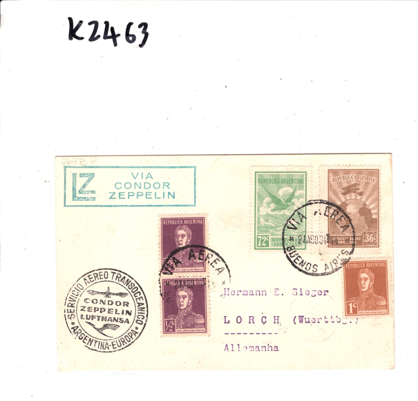 GRAF ZEPPELIN Card ARGENTINA Air Mail 1934 CONDOR B. Aires GERMANY Lorch KZ463
