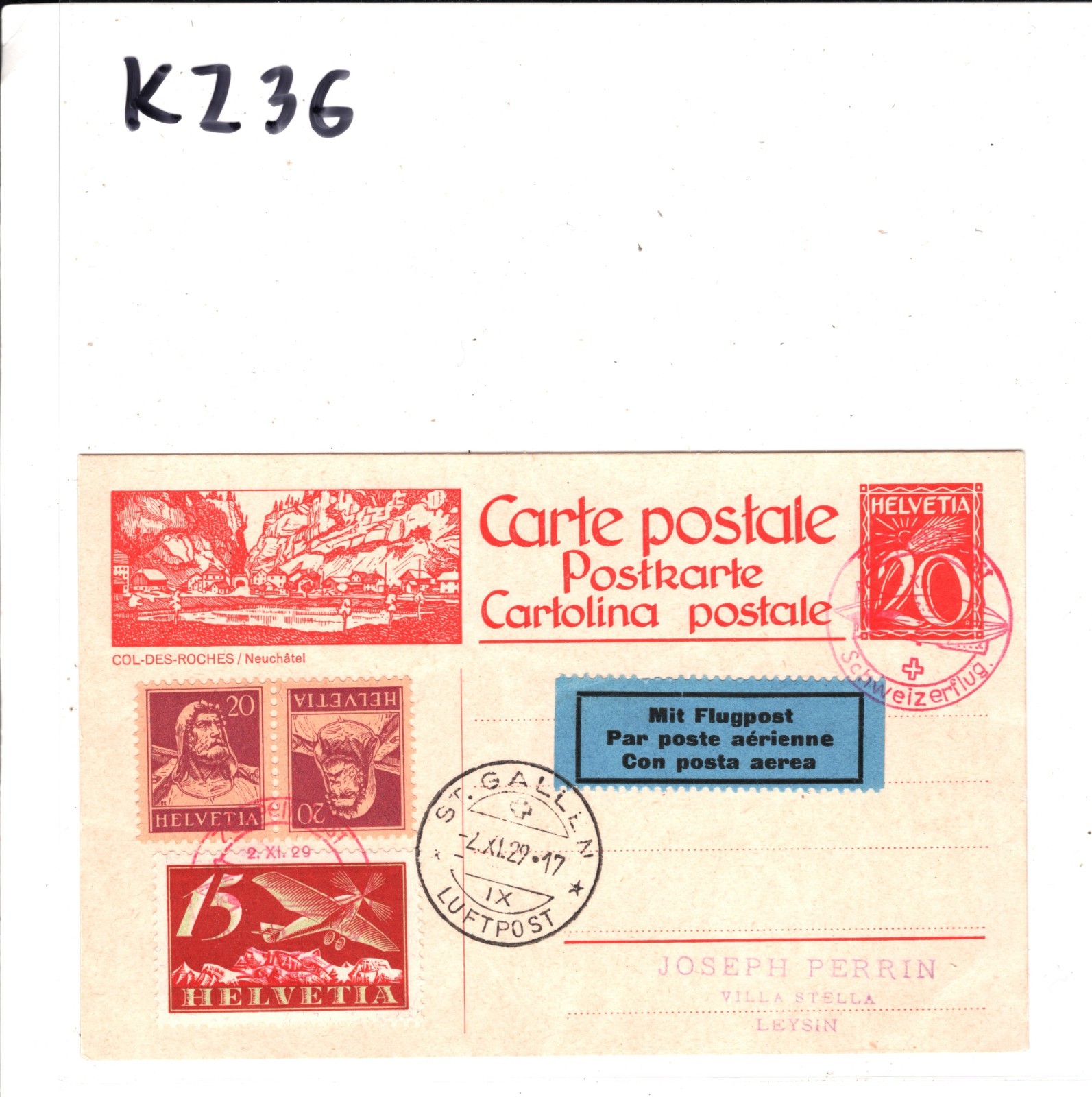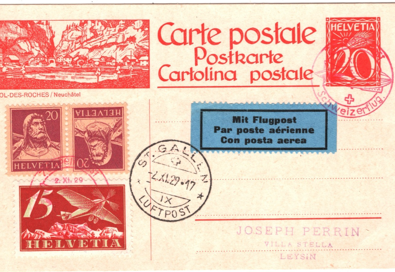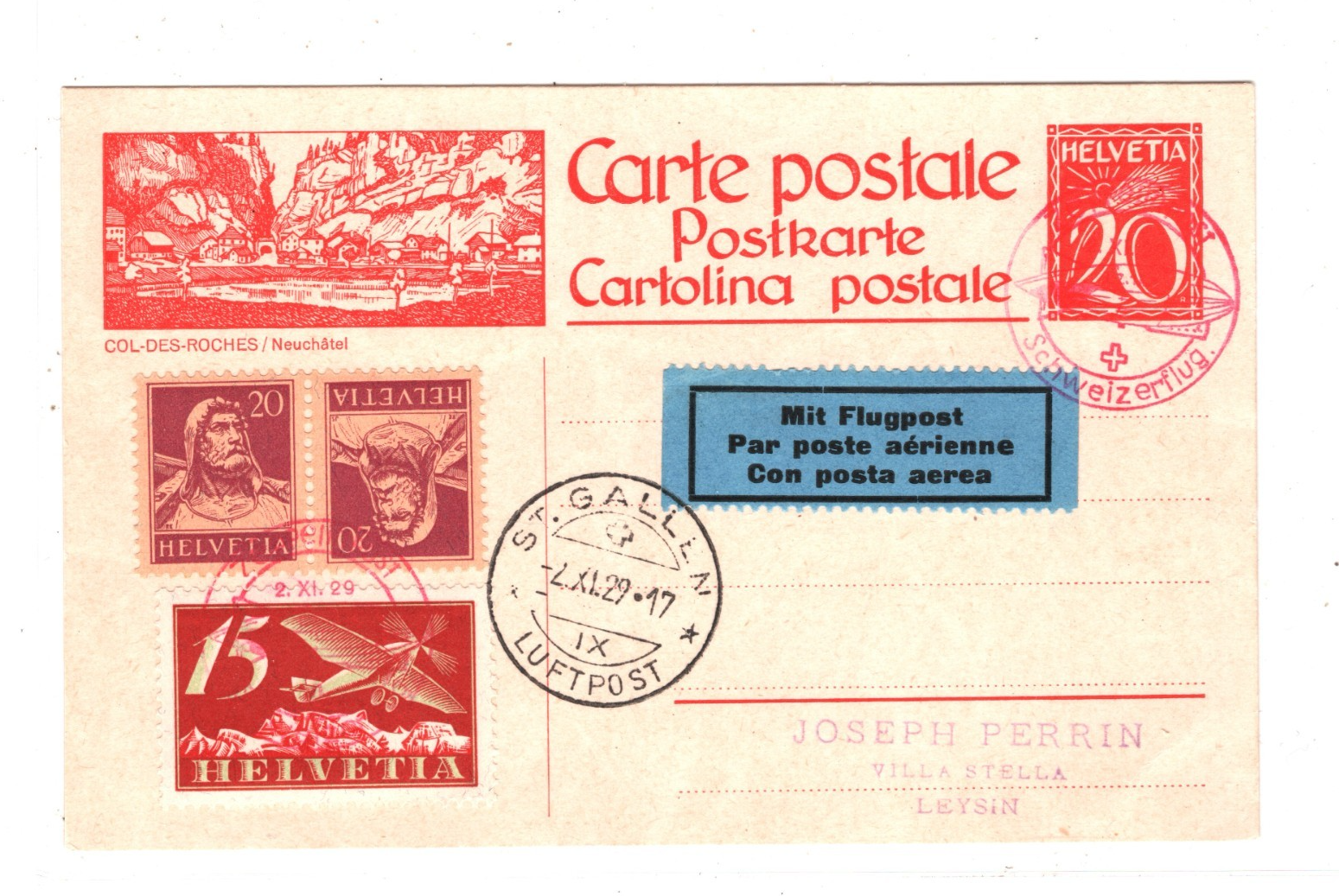 GRAF ZEPPELIN Card *SWITZERLAND* Stationery 1929 Air Mail SCHWEIZERFLUG Red Cachet St Gallen KZ36