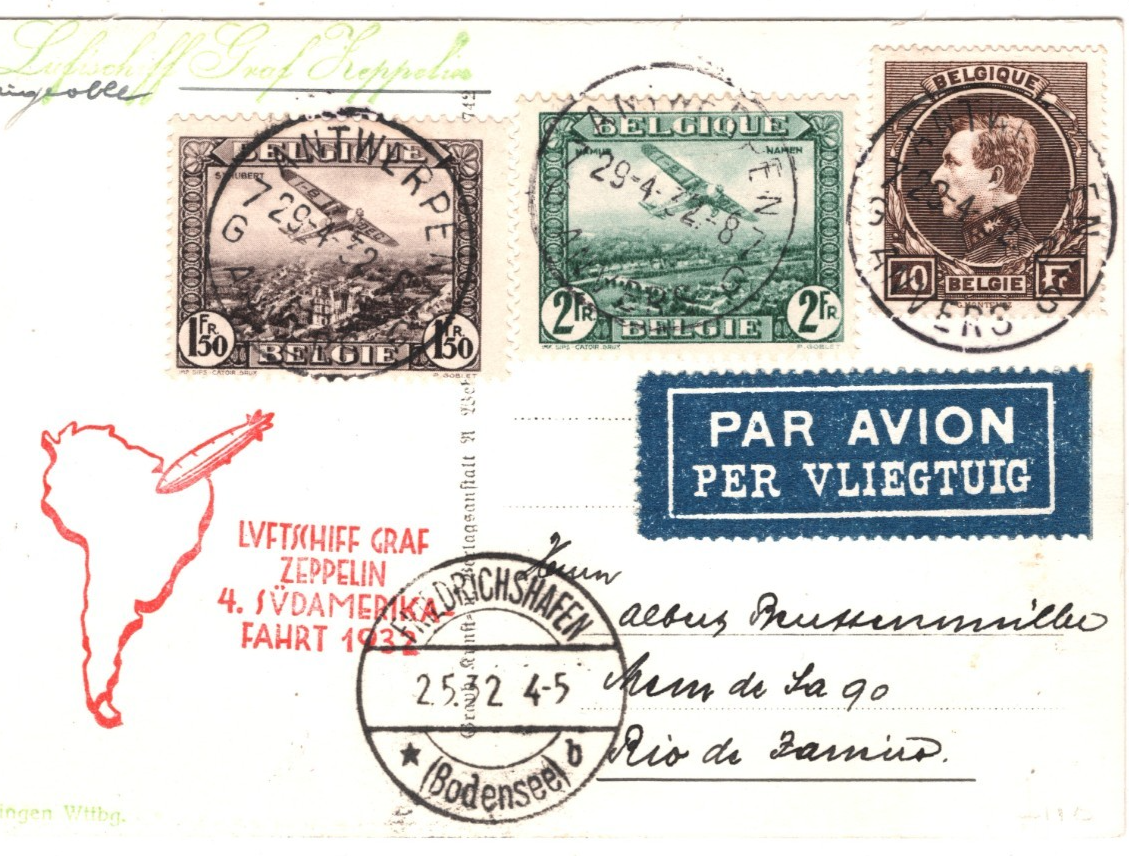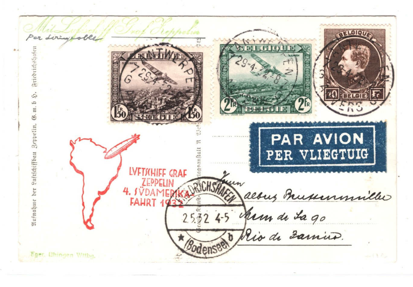 GRAF ZEPPELIN BELGIUM Air Mail Card 4.SÜDAMERIKAFAHRT 1932 BRAZIL Rio KZ107