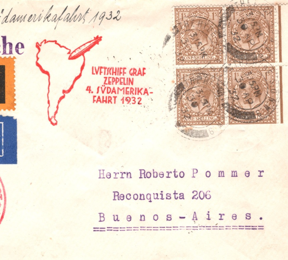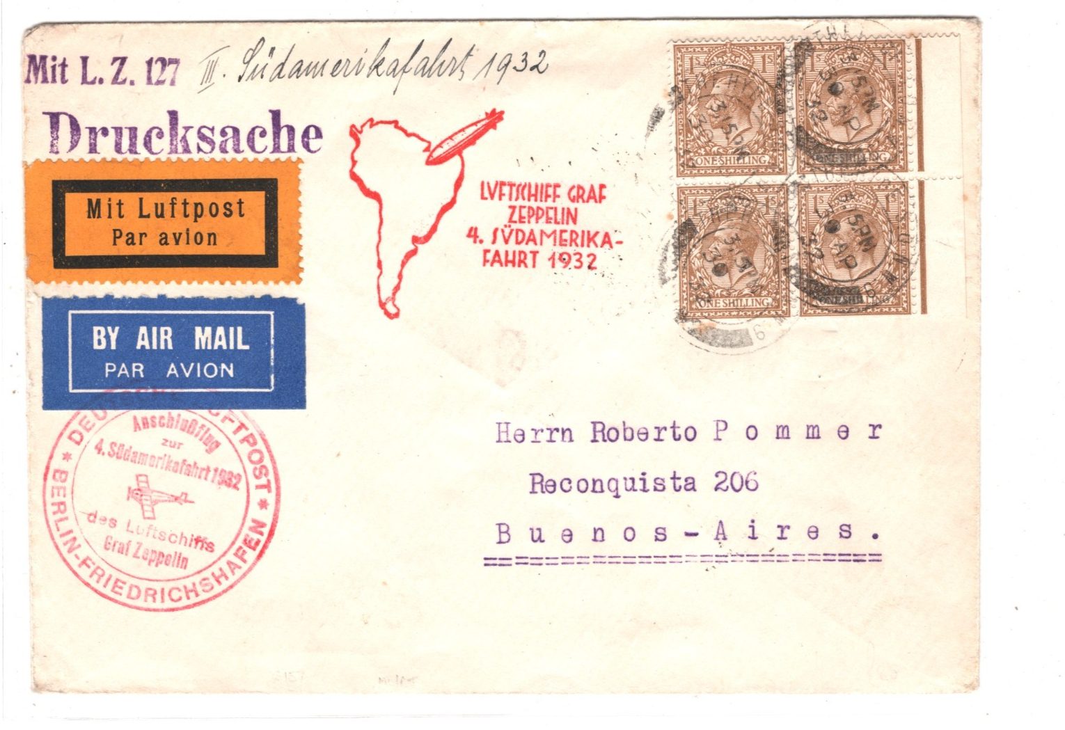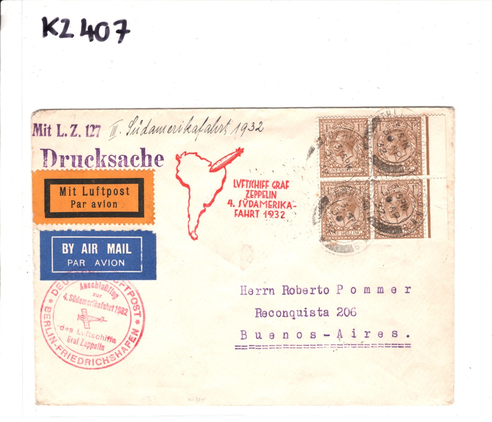 GRAF ZEPPELIN *GB* Treaty Air Mail 1932 Cover 4.SÜDAMERIKAFAHRT Argentina KZ407
