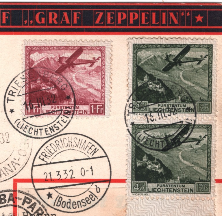 GRAF ZEPPELIN Illustrated ART Card LIECHTENSTEIN Air 1932 SÜDAMERIKAFAHRT KZ477
