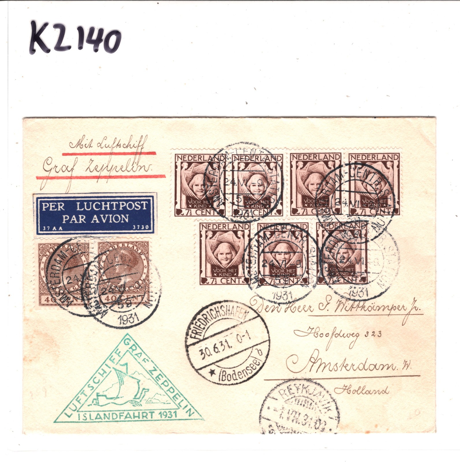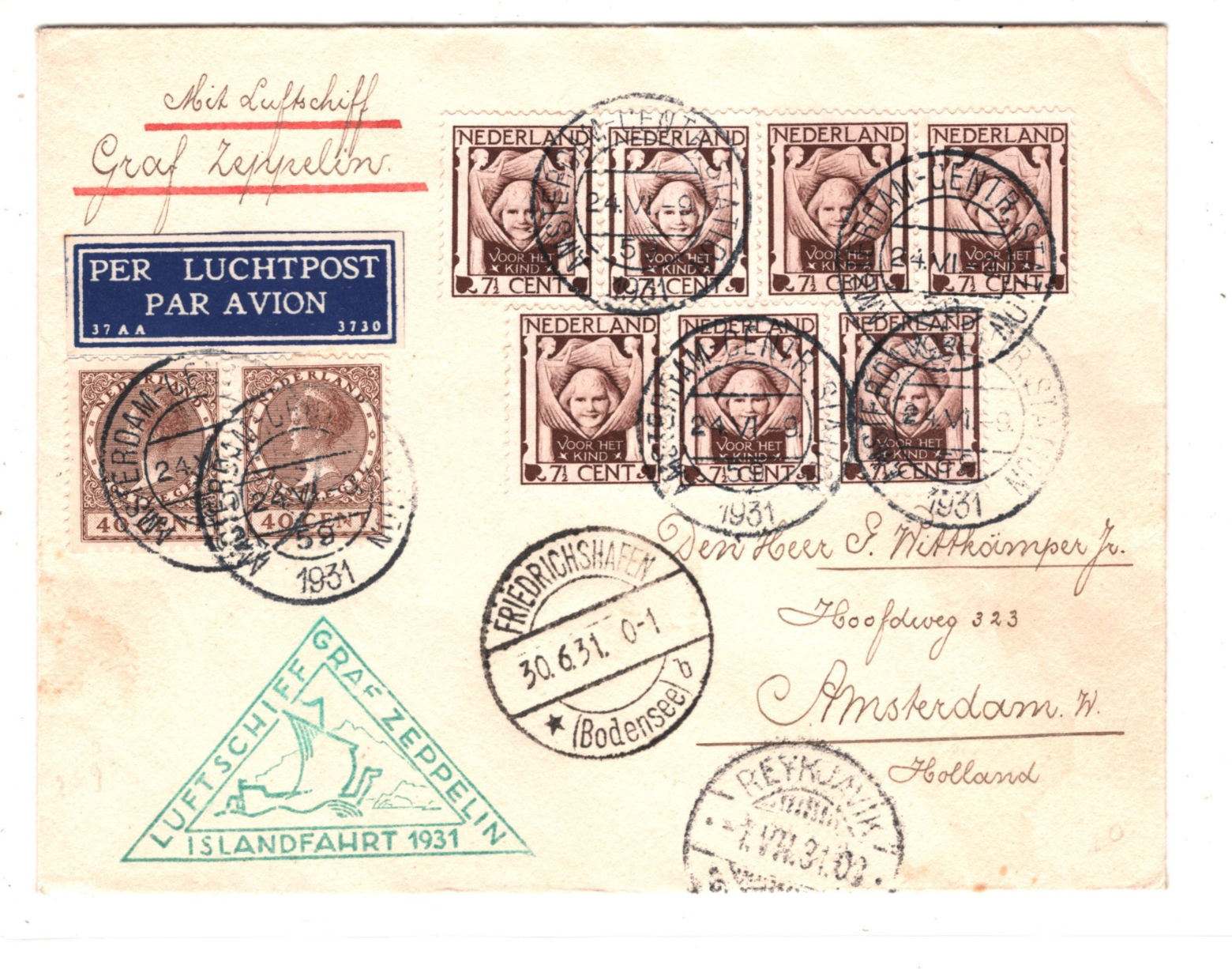 GRAF ZEPPELIN NETHERLANDS Air Mail Cover 1931 ISLANDFAHRT Iceland Reykjavik Amsterdam KZ140