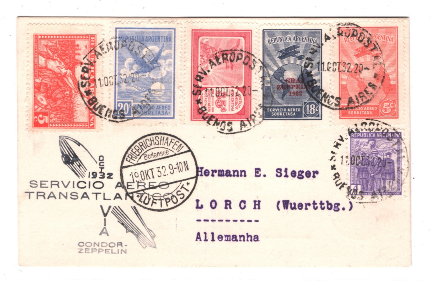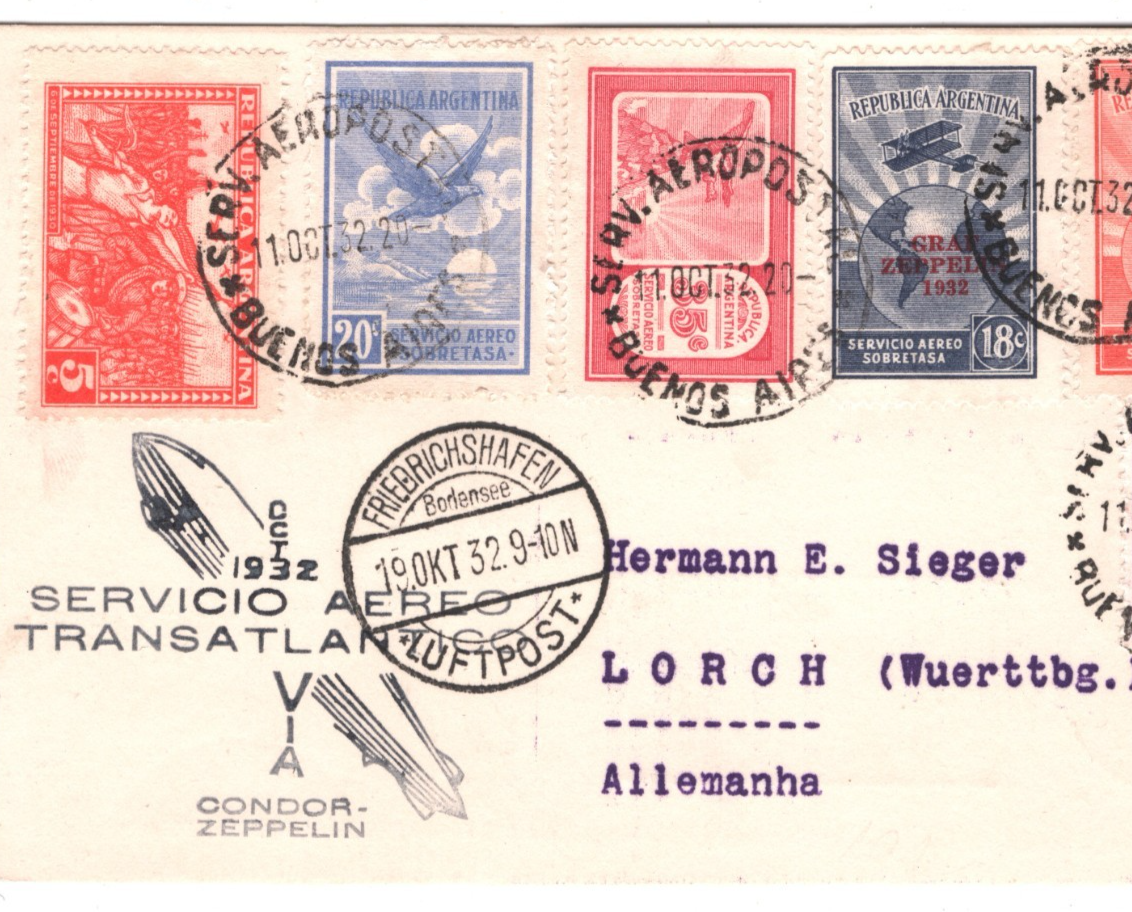 GRAF ZEPPELIN Overprint ARGENTINA 18c Air Card CONDOR 1932 GERMANY Lorch KZ457