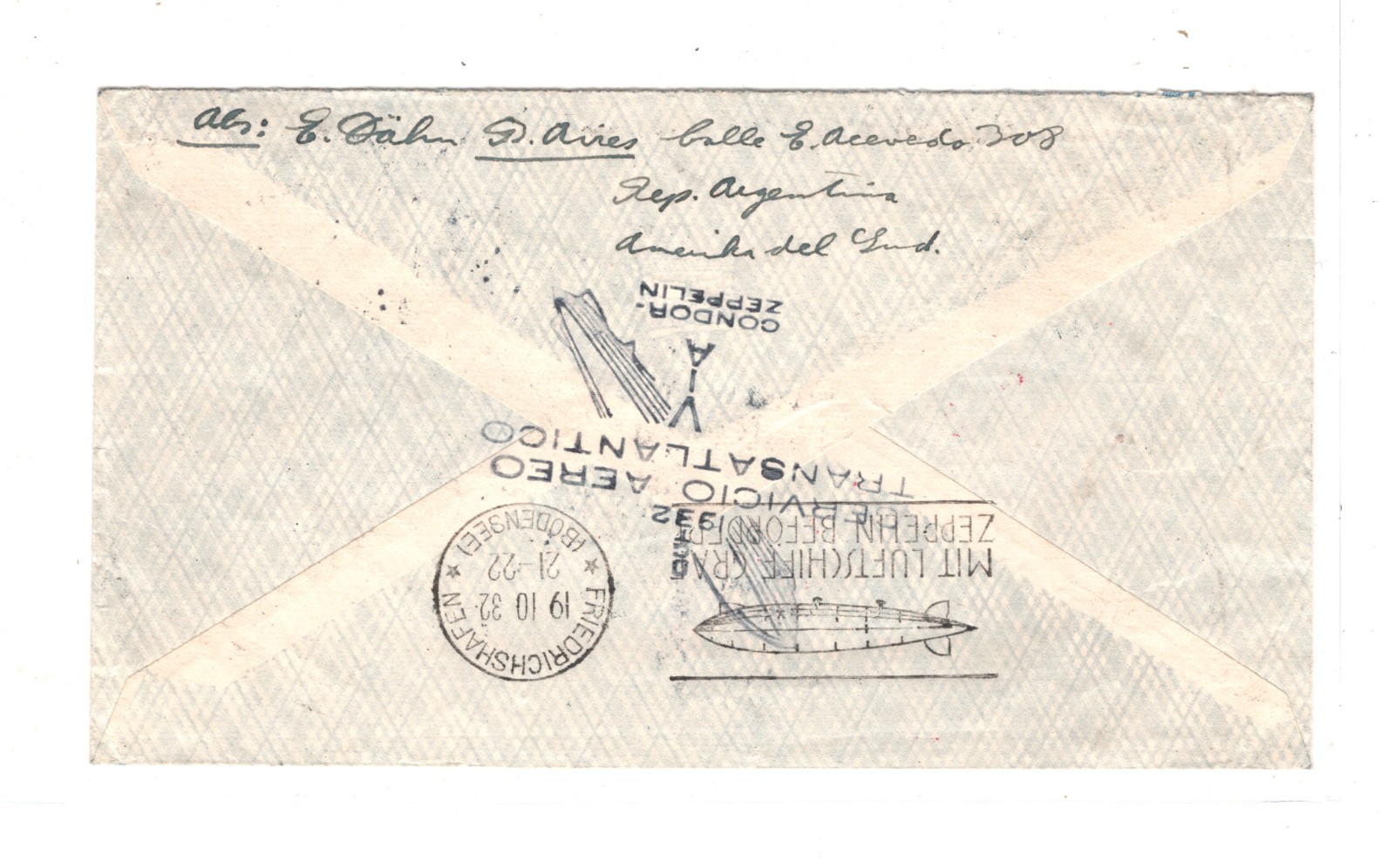 GRAF ZEPPELIN ARGENTINA Air Mail Cover Buenos Aires GERMANY Zittau 1932 KZ452
