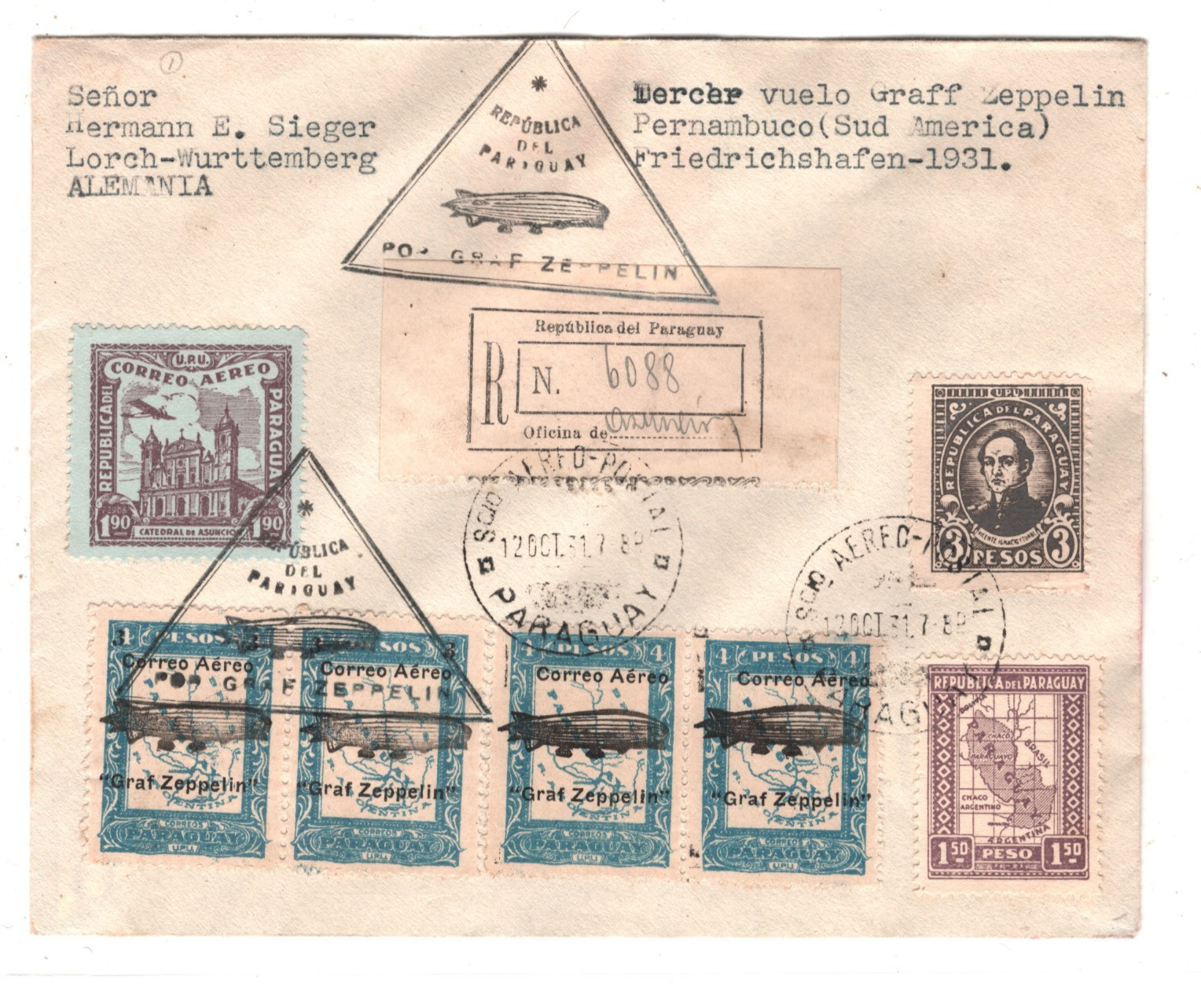 GRAF ZEPPELIN Overprint PARAGUAY Air Mail Cover Asuncion Reg 1931 Lorch KZ467