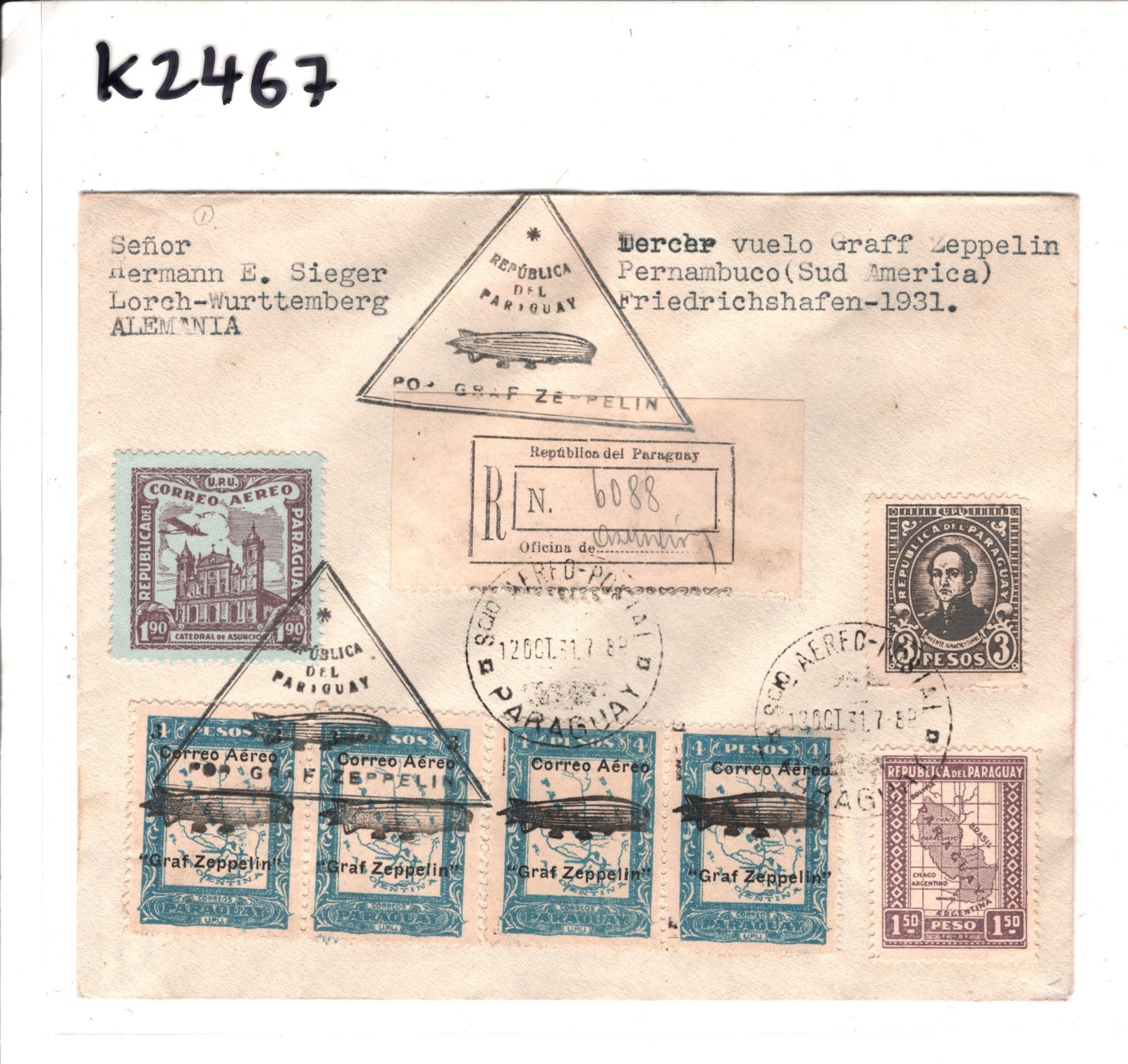 GRAF ZEPPELIN PARAGUAY Air Mail Cover Asuncion Reg GERMANY Lorch 1931 KZ467