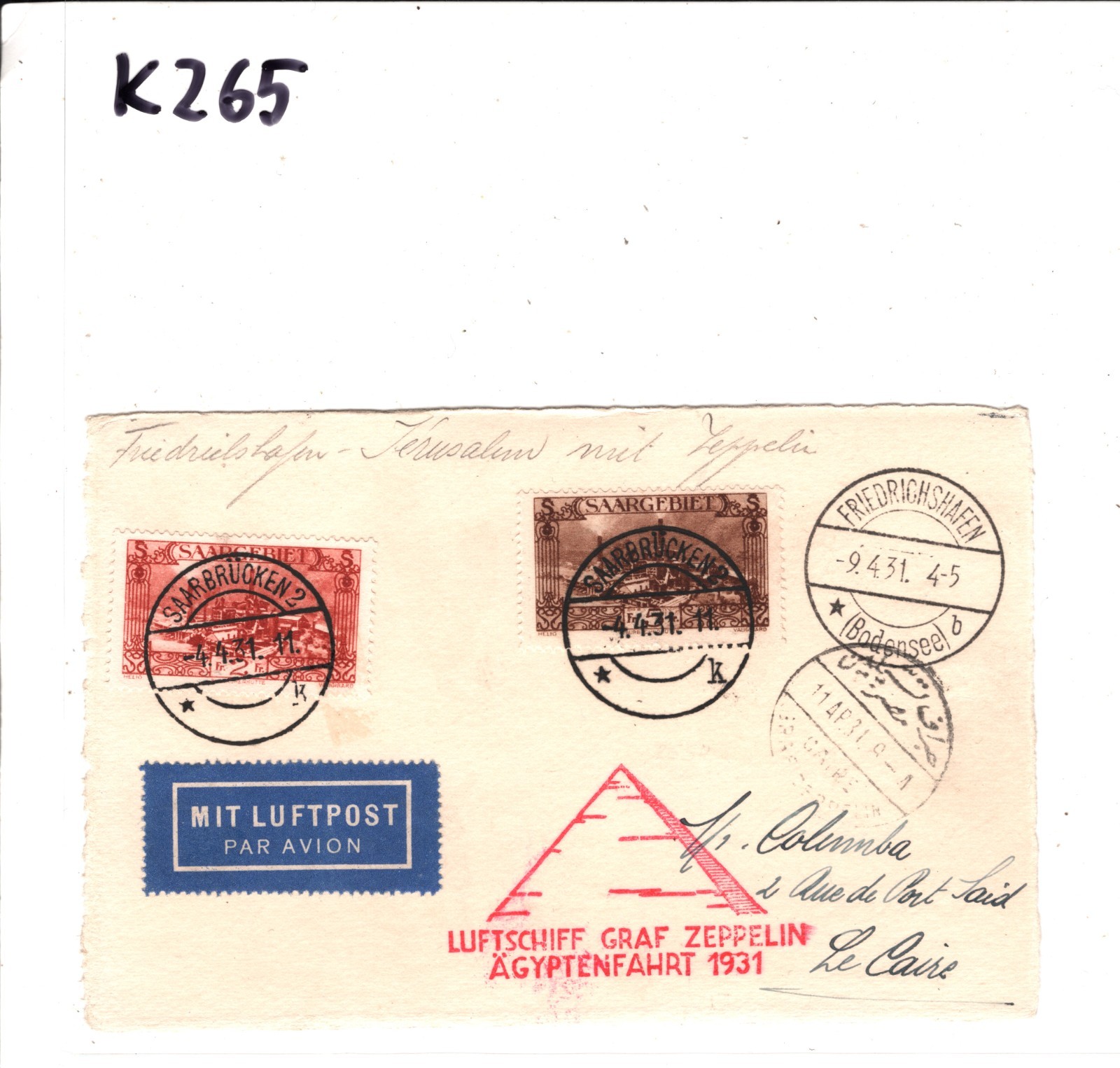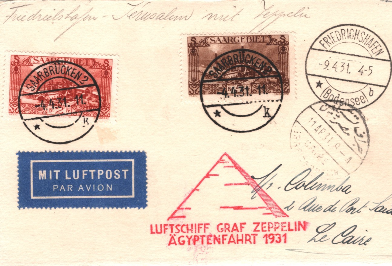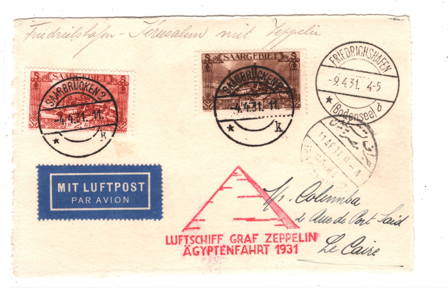 GRAF ZEPPELIN SAAR Air Mail Card ÄGYPTENFAHRT 1931 EGYPT Cairo Saarbrücken KZ65