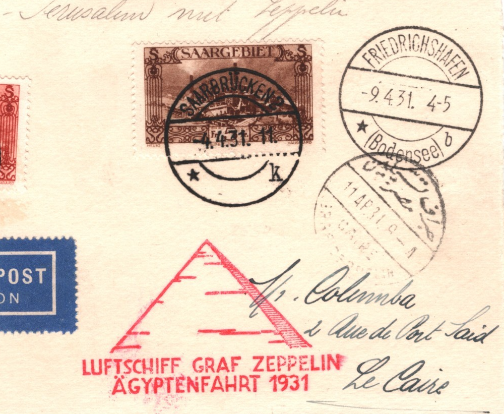 GRAF ZEPPELIN *SAAR* Air Mail Card ÄGYPTENFAHRT 1931 EGYPT Cairo {samwells}KZ65