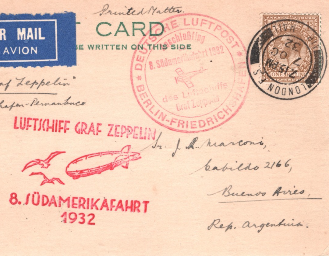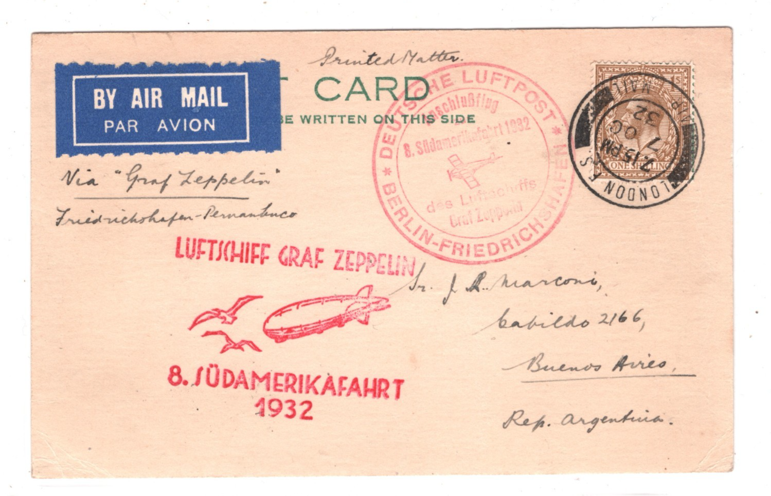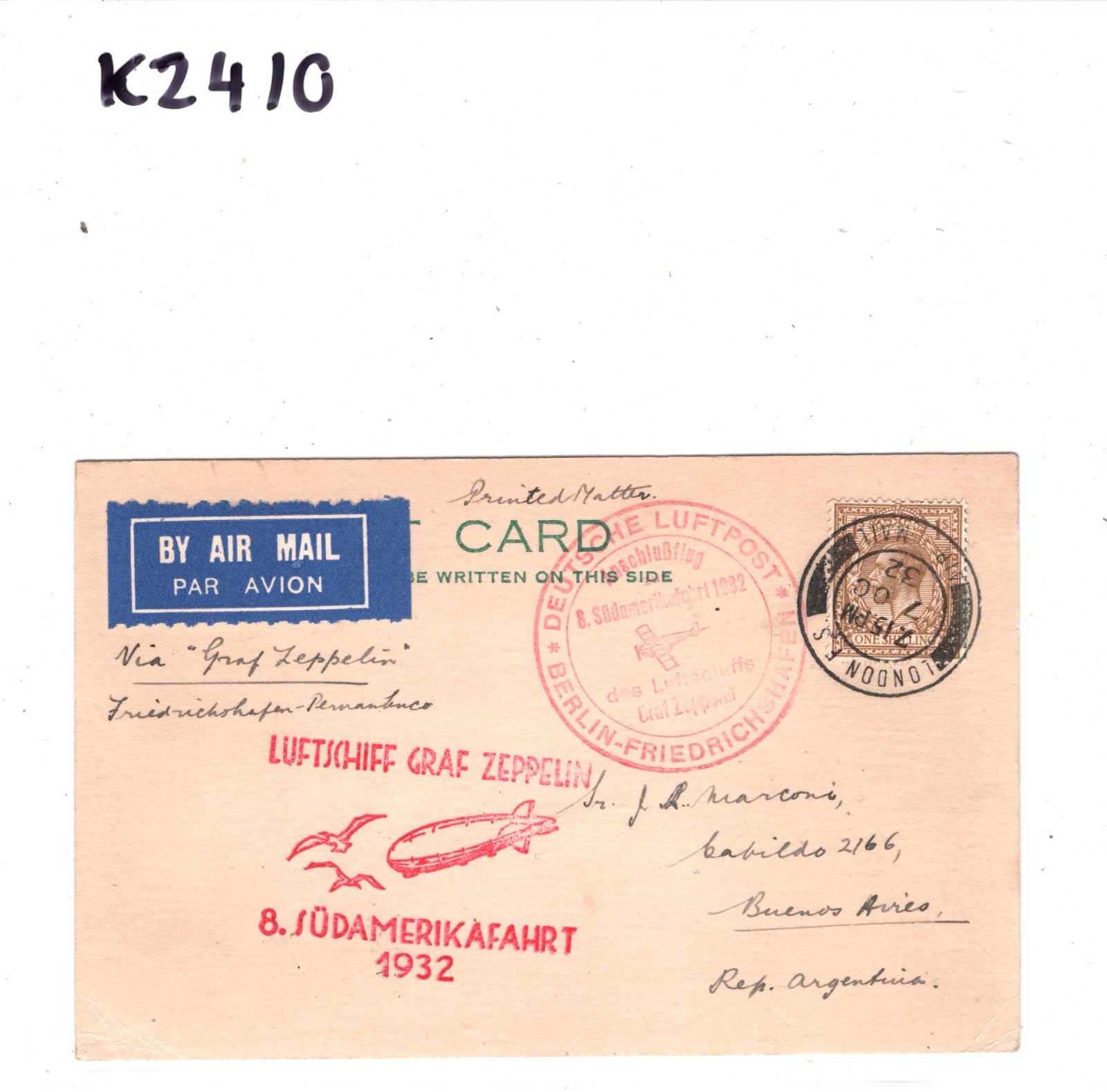 GRAF ZEPPELIN GB Air Mail 1932 8. SÜDAMERIKAFAHRT ARGENTINA Buenos Aires London KZ410