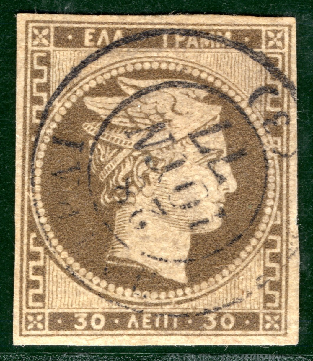 GREECE Classic Stamp HERMES 30l 1877 CDS Postmark Used{samwells-covers}ORANGE228