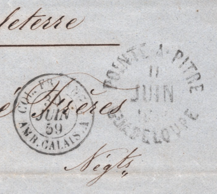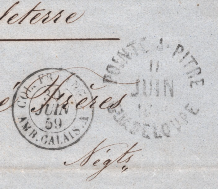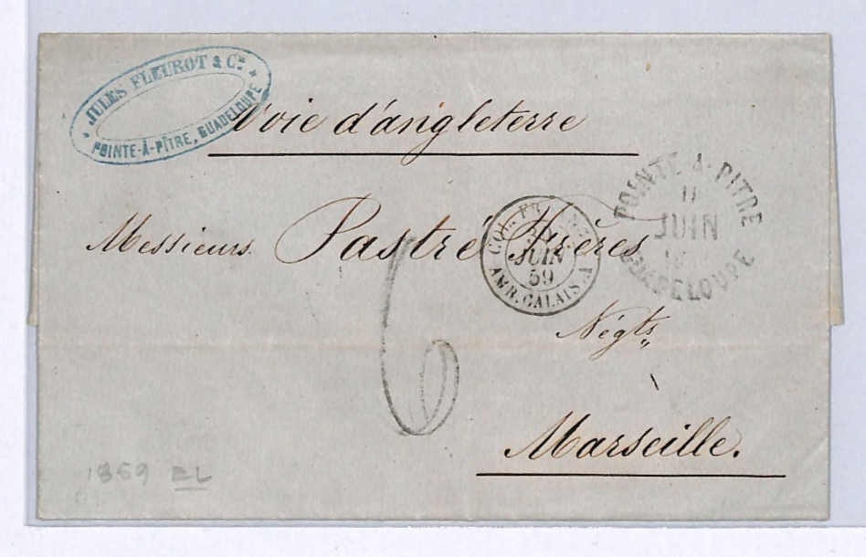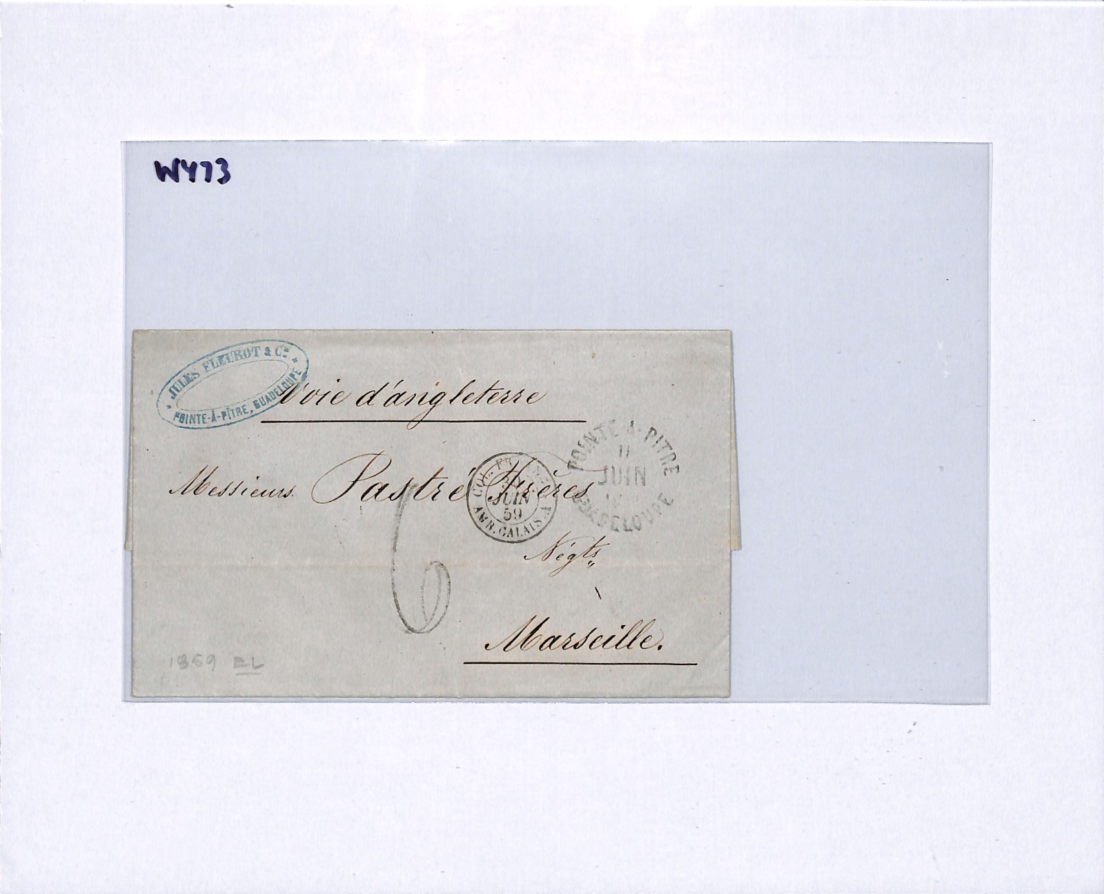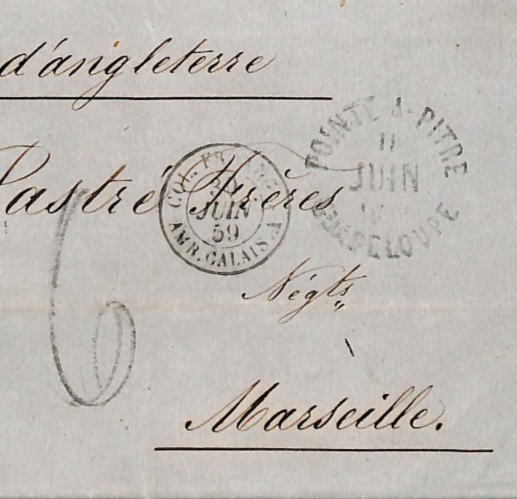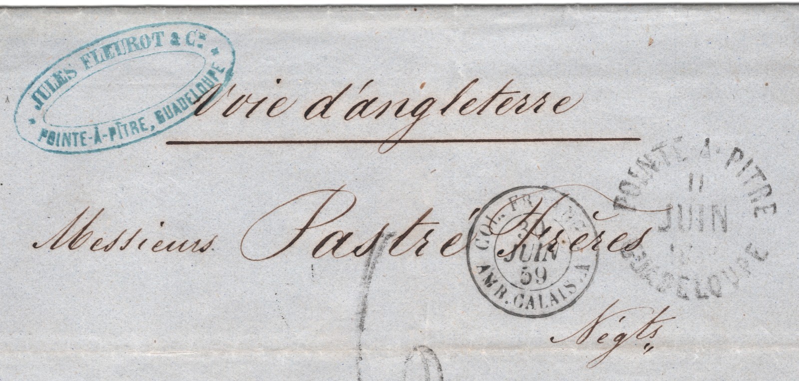 GUADELOUPE Cover *Pointe-à-Pitre* 1859 CDS Marseille PAQUEBOT France Cols WY73