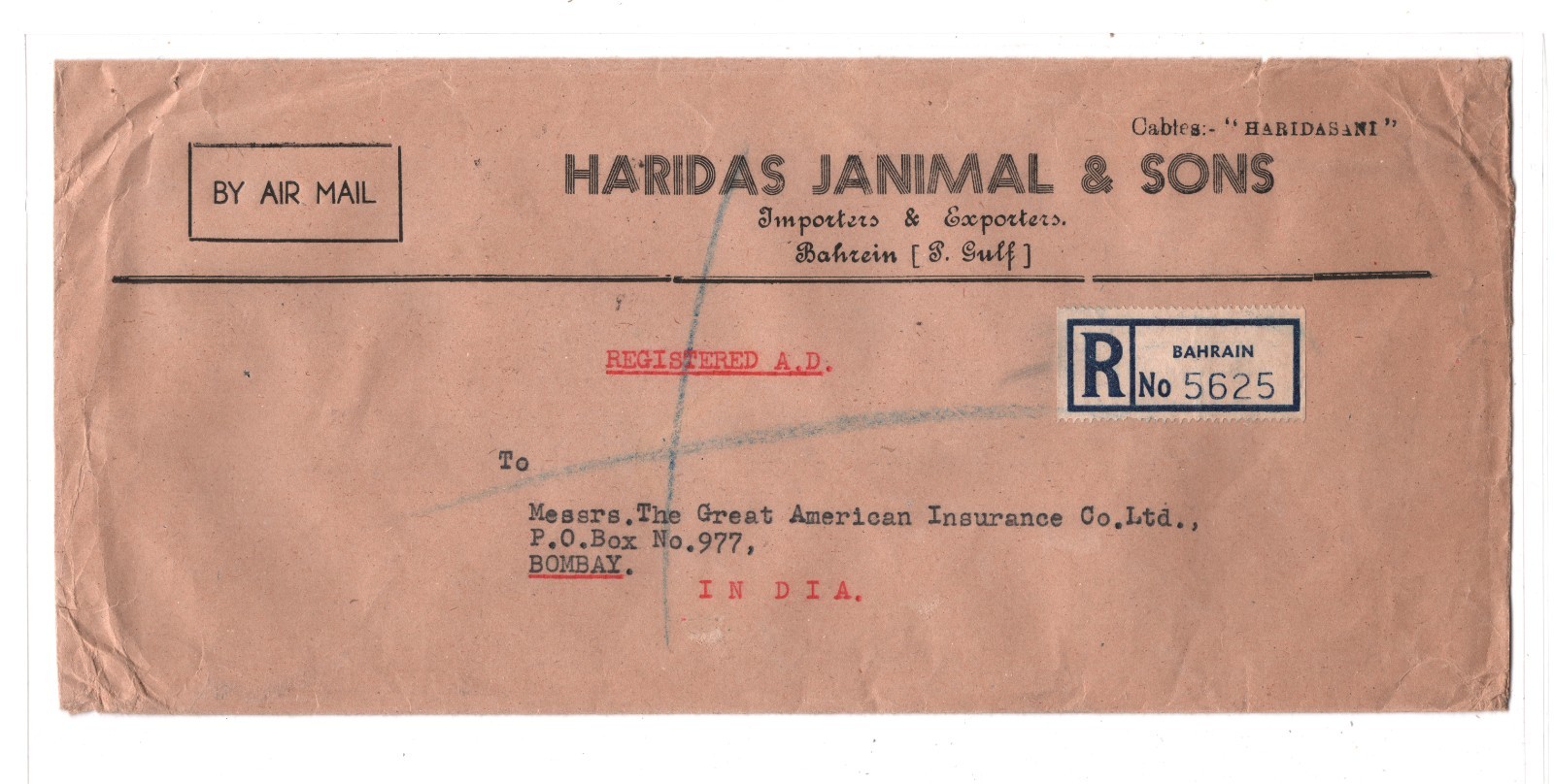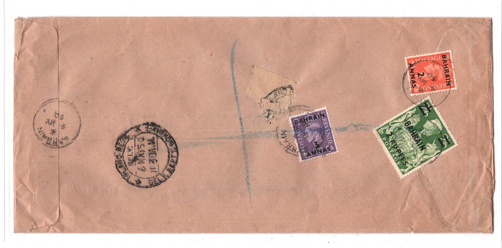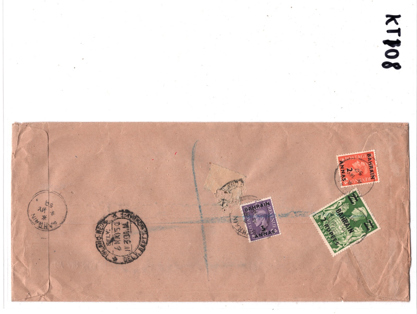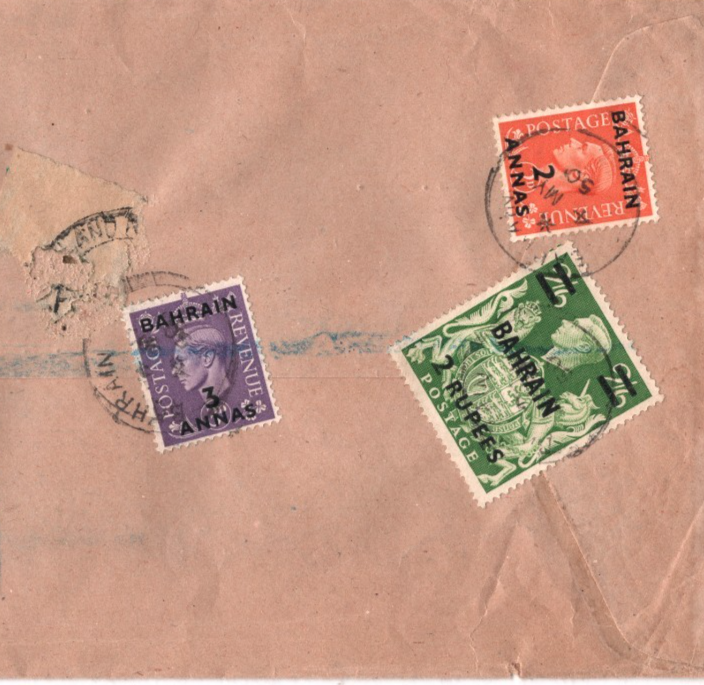 Gulf BAHRAIN KGVI GB Overprints Cover 2R/2s6d HIGH VALUE India Bombay 1950 KT108