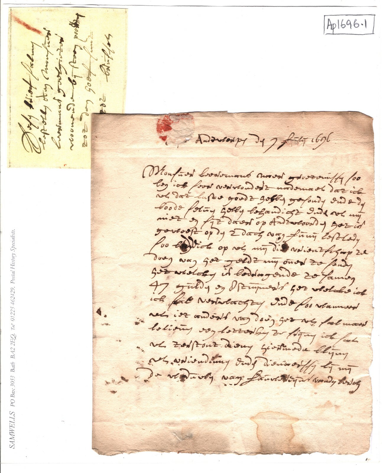 CLEARLY DATED 17th CENTURY ENTIRE LETTER. WORTHY OF FURTHER RESEARCH. Some faults as to be expected with a paper item of this age. Overall Fine for an item of this type and period. Condition as seen in scans. Please look at all the scans to help form your own opinion. Priced and sold with all faults considered (WAF).