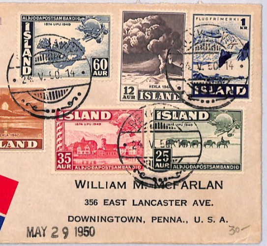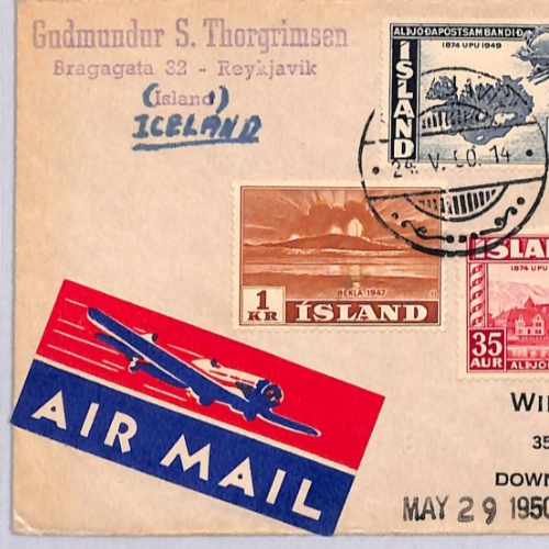 ICELAND Air Mail Cover Reykjavik 1950 USA {samwells-covers}YG397