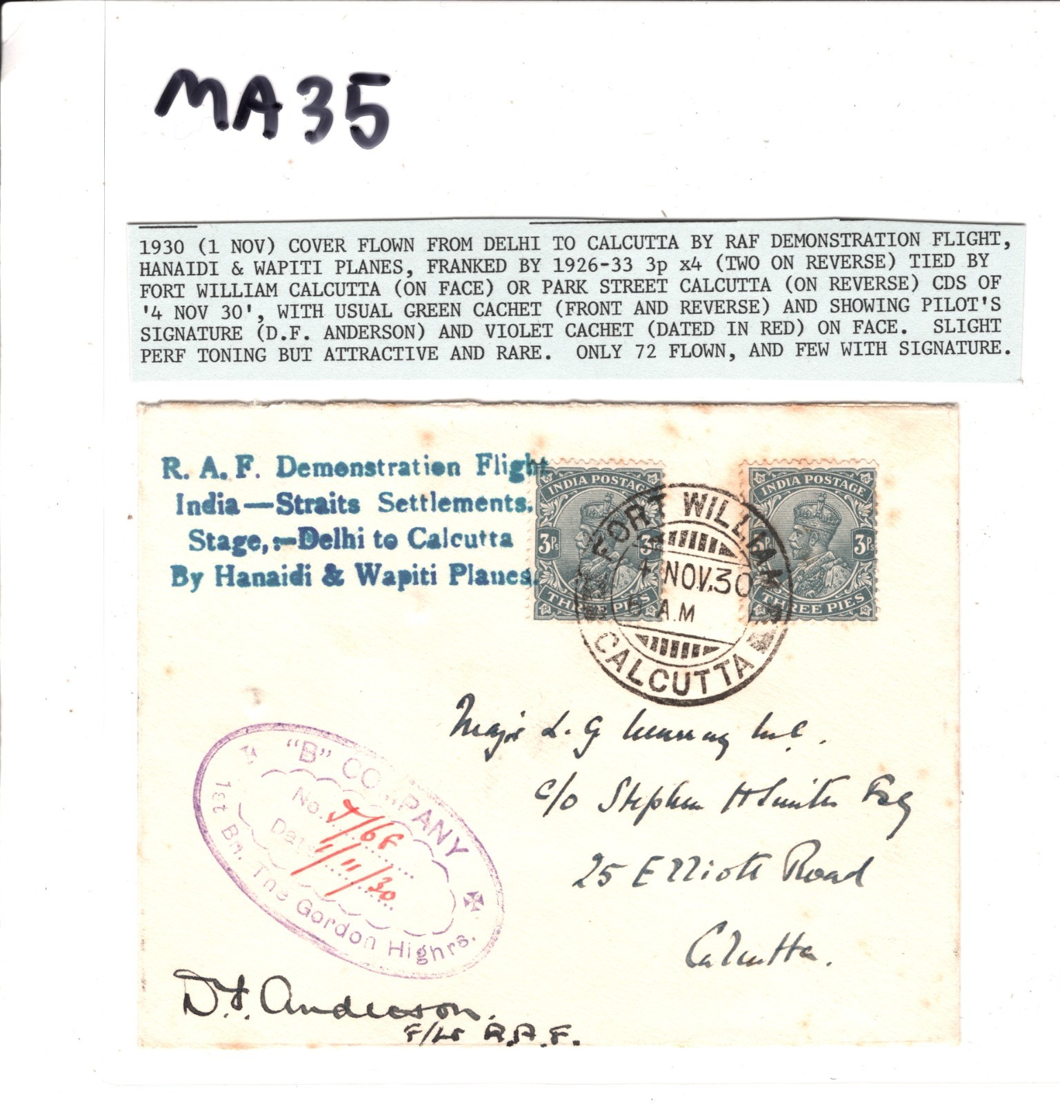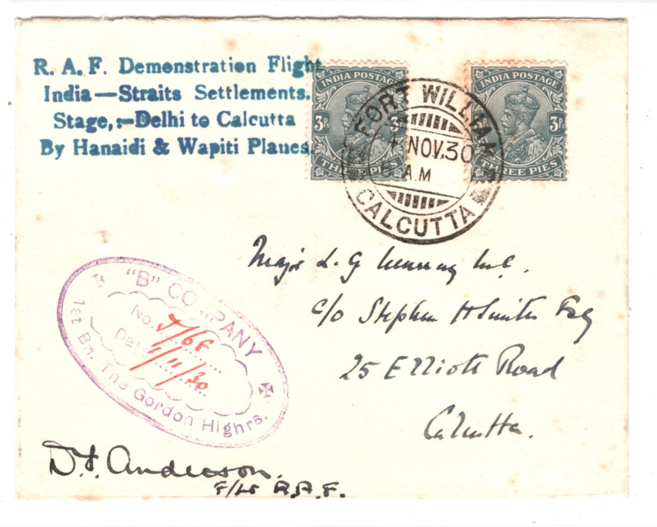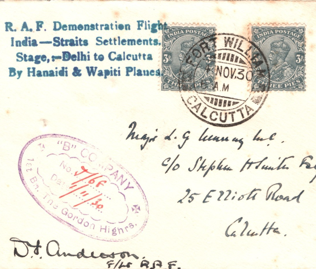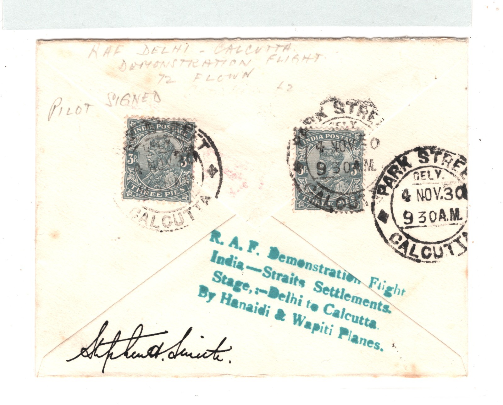 INDIA Air Mail Cover 1930 RAF DEMO FLIGHT Rare Signed PILOT & STEPHEN SMITH MA35