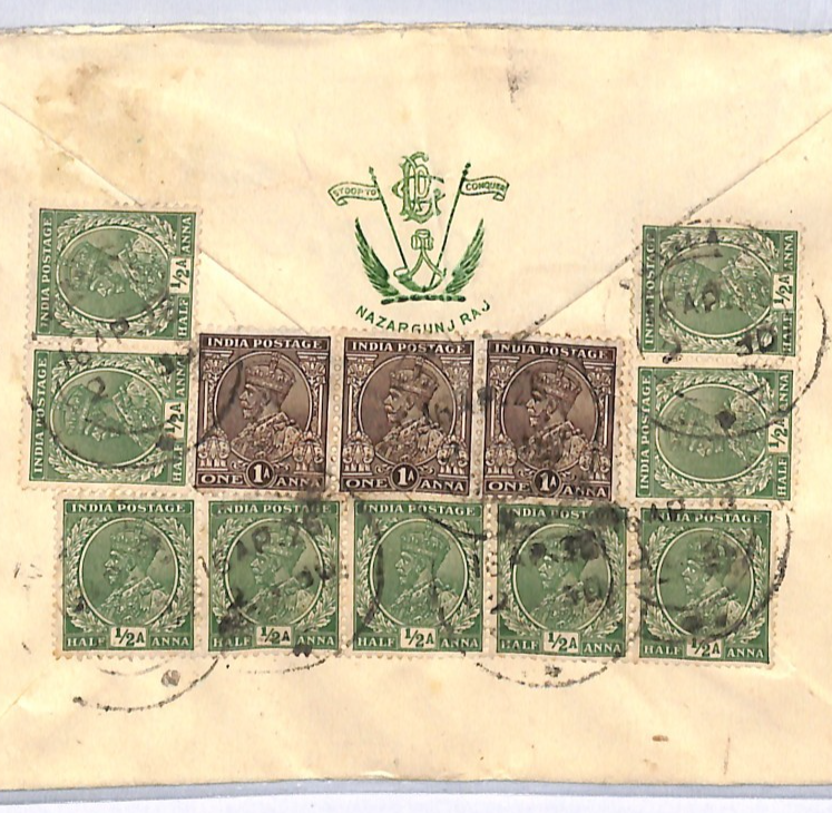 INDIA Bengal KGV Cover *NAZARGUNJ RAJ* Crest PRINCELY STATE Military ROYALTY WY1
