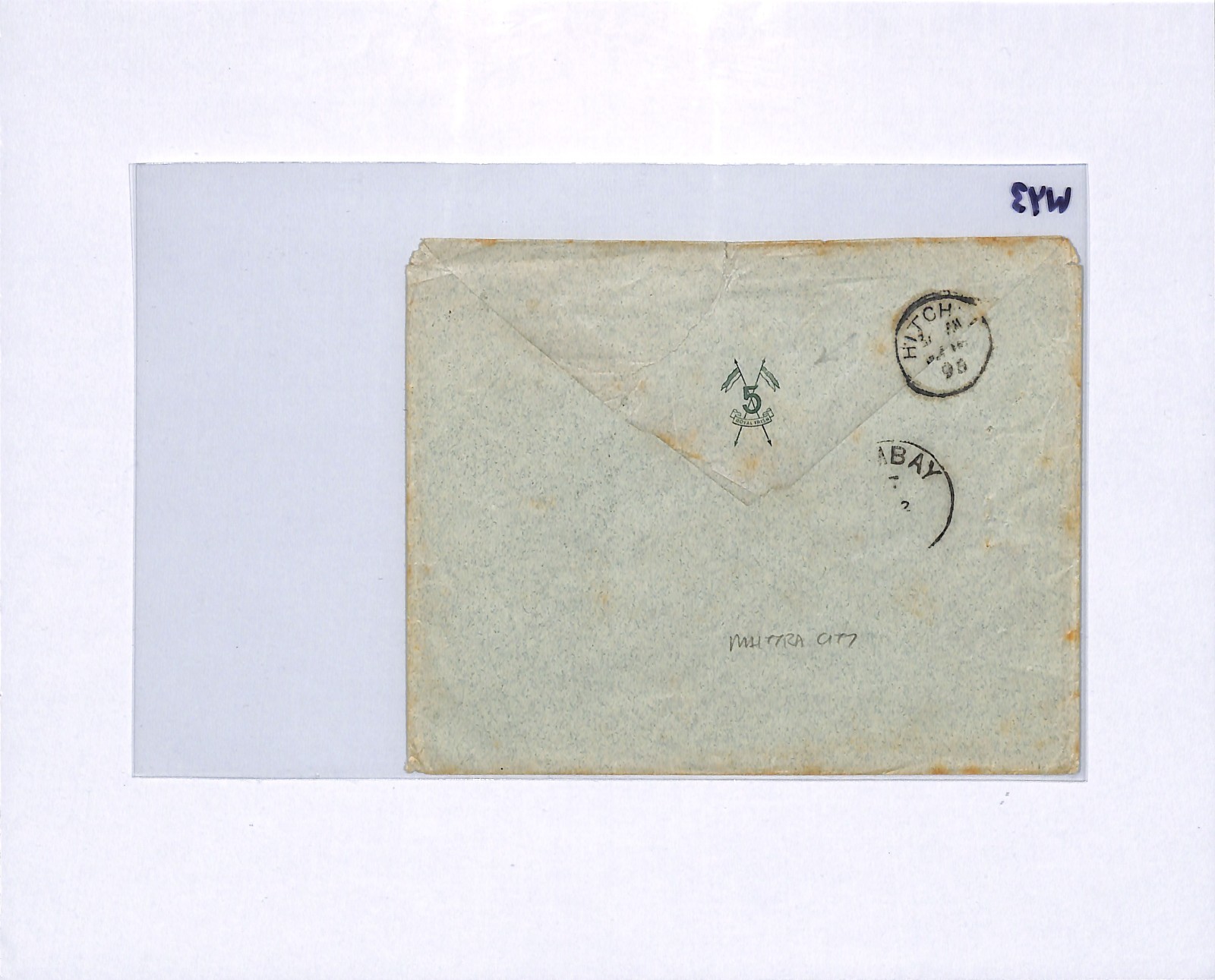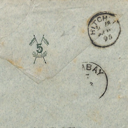 INDIA MILITARY QV Cover Muttra *5th ROYAL IRISH LANCERS* Crest 1895 Hitchin WY3