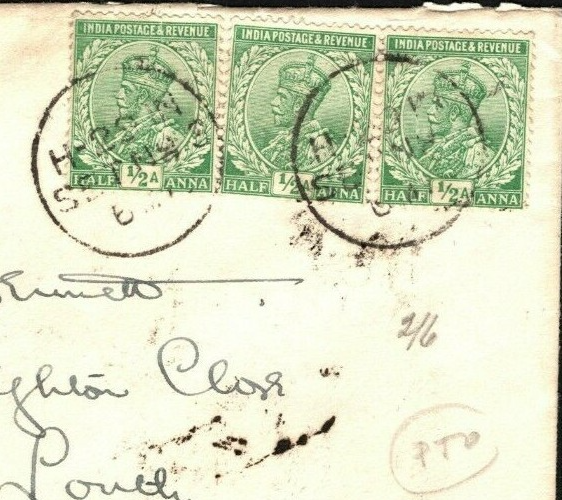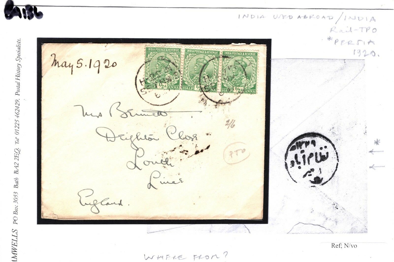 India RAILWAY TPO Cover 1920 Superb *Nizamabad* Local Postmark On Reverse BA136