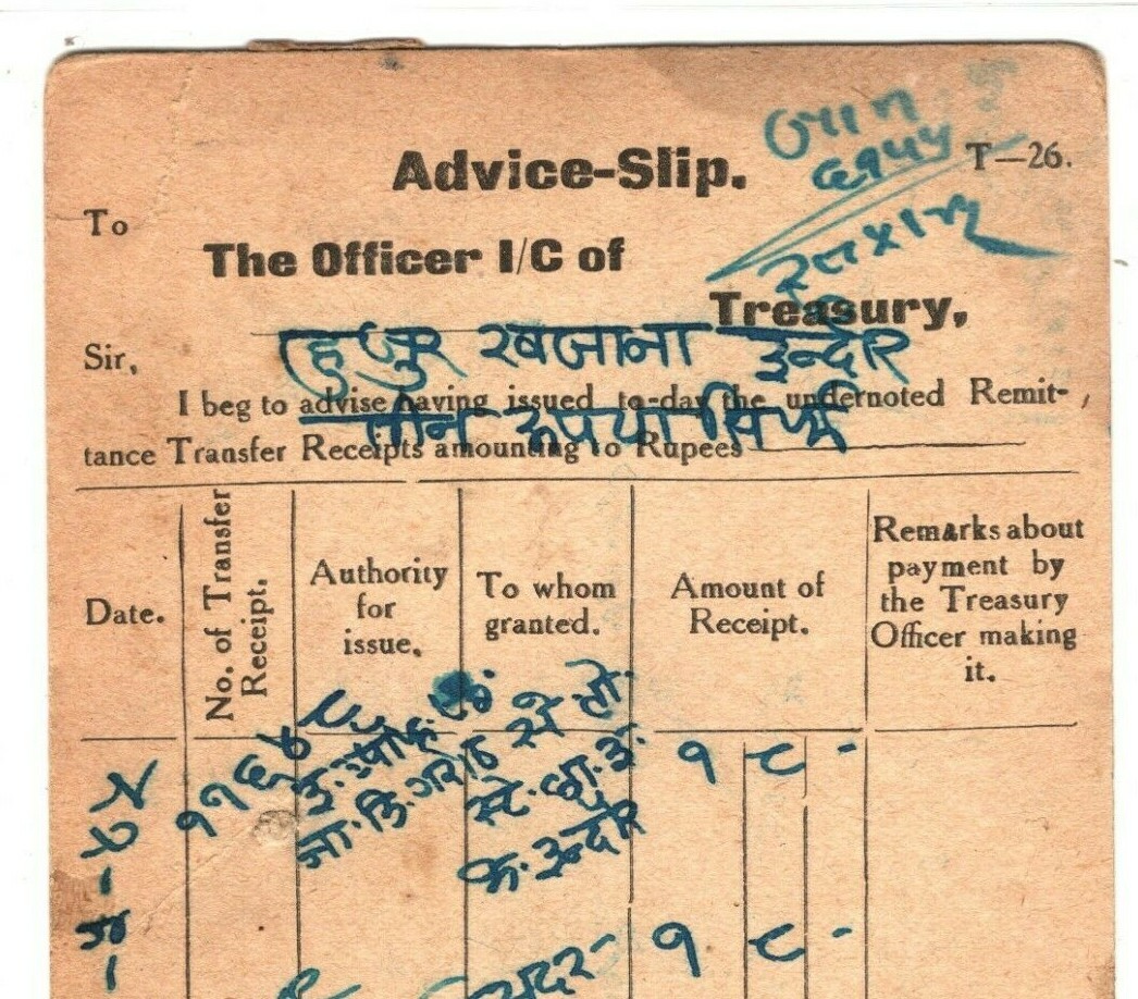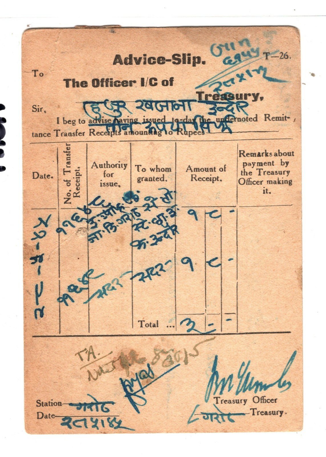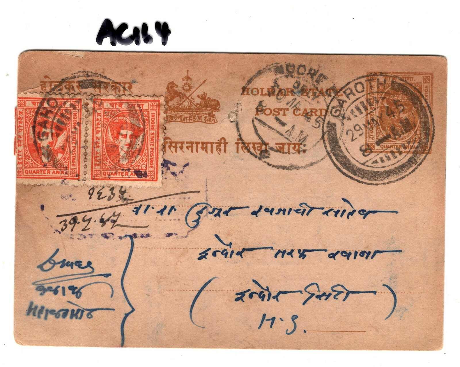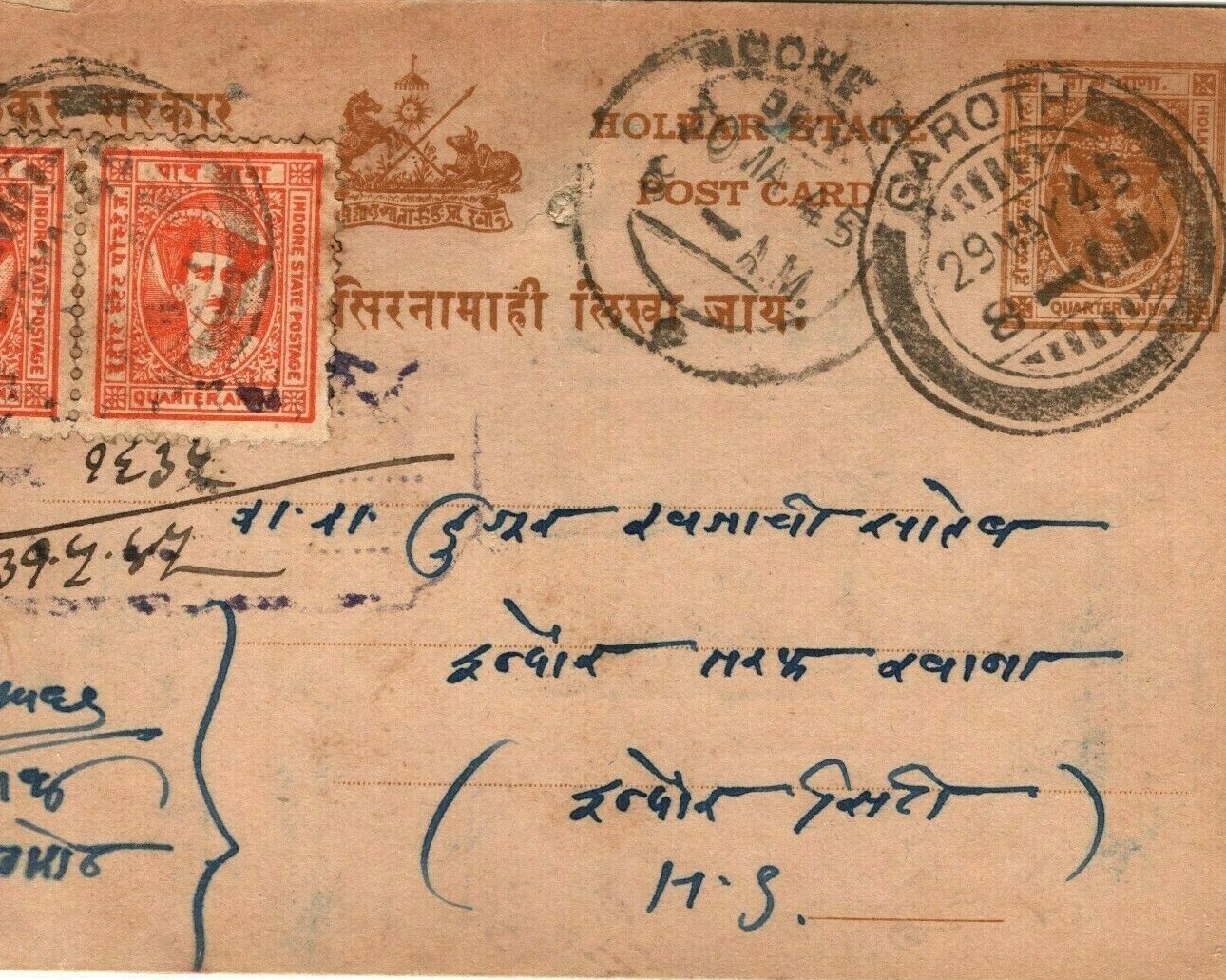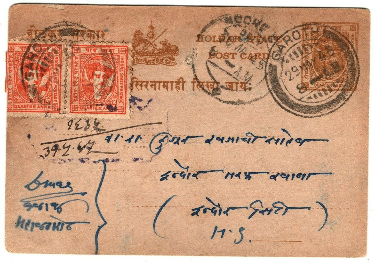 India States INDORE HOLKAR Garoth *TREASURY* Postal Stationery 1945 Card AC164