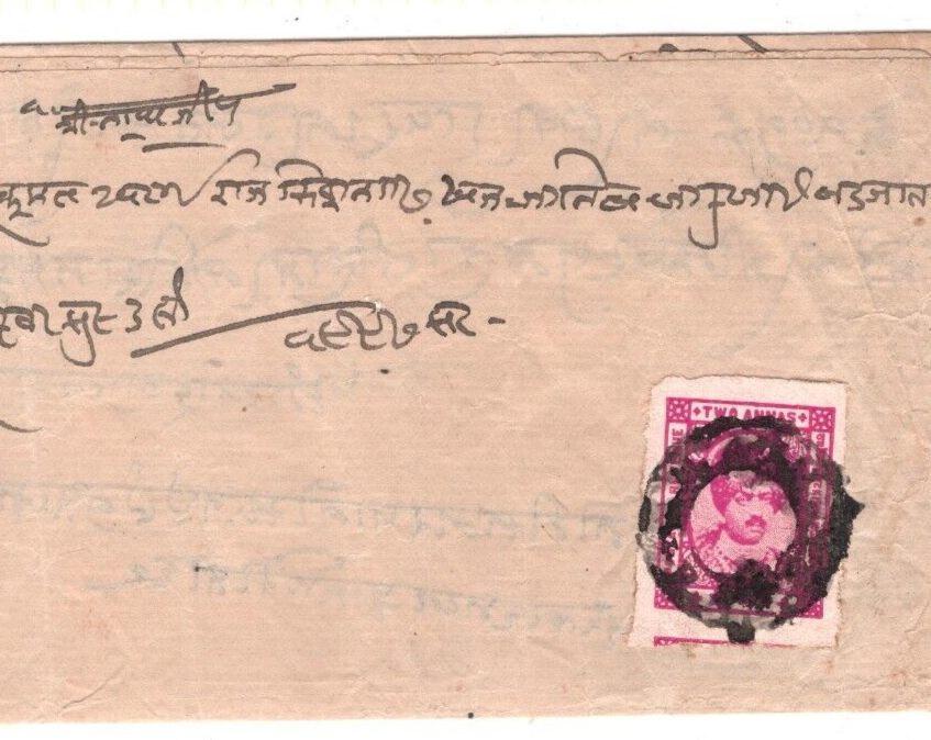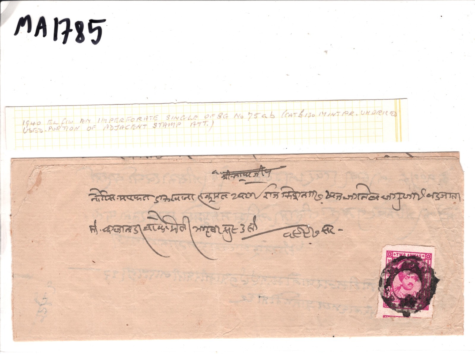 India States KISHANGARH 2a Magenta *IMPERF* Single RARE Cover 1940 (SG.75ab)* MA1785