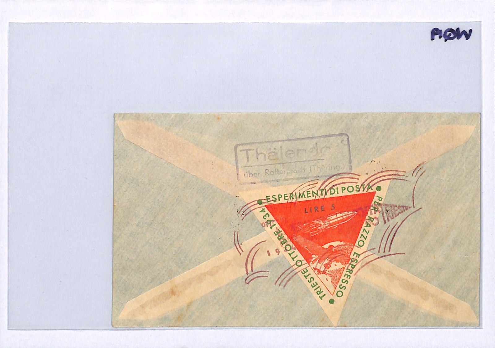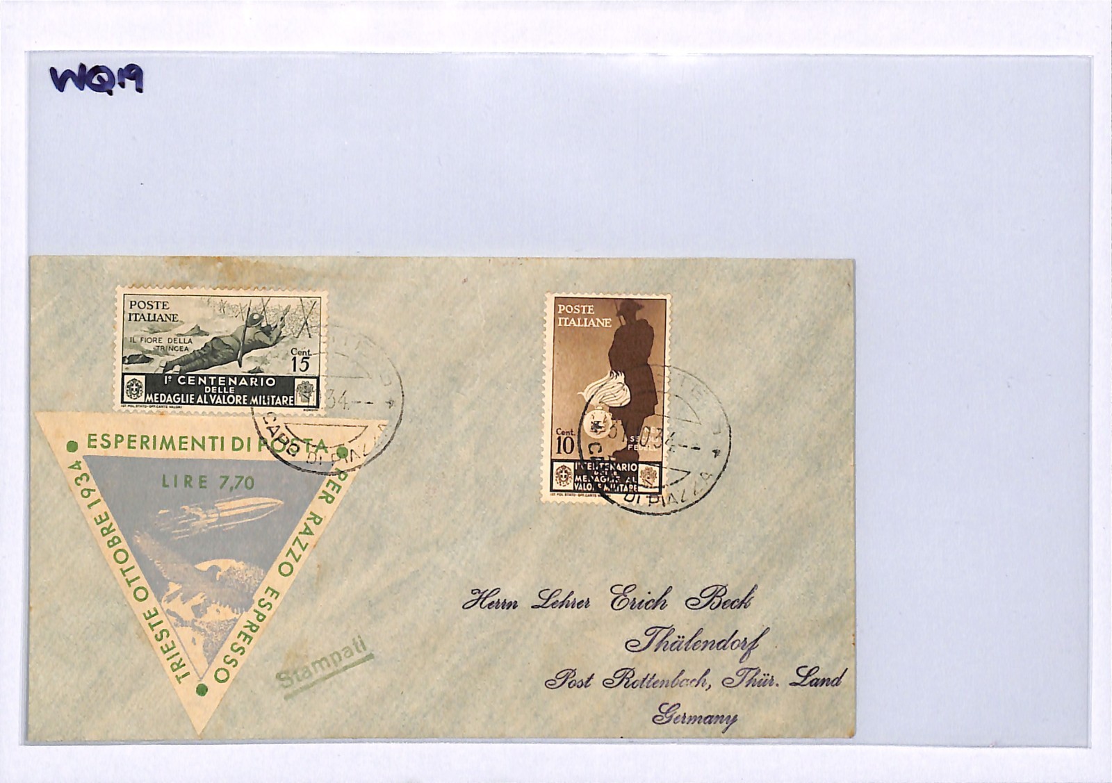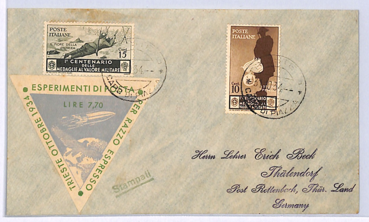 ITALY ROCKET MAIL Card 1934 RAZZO ESPRESSO Trieste Germany Thälendorf WQ19
