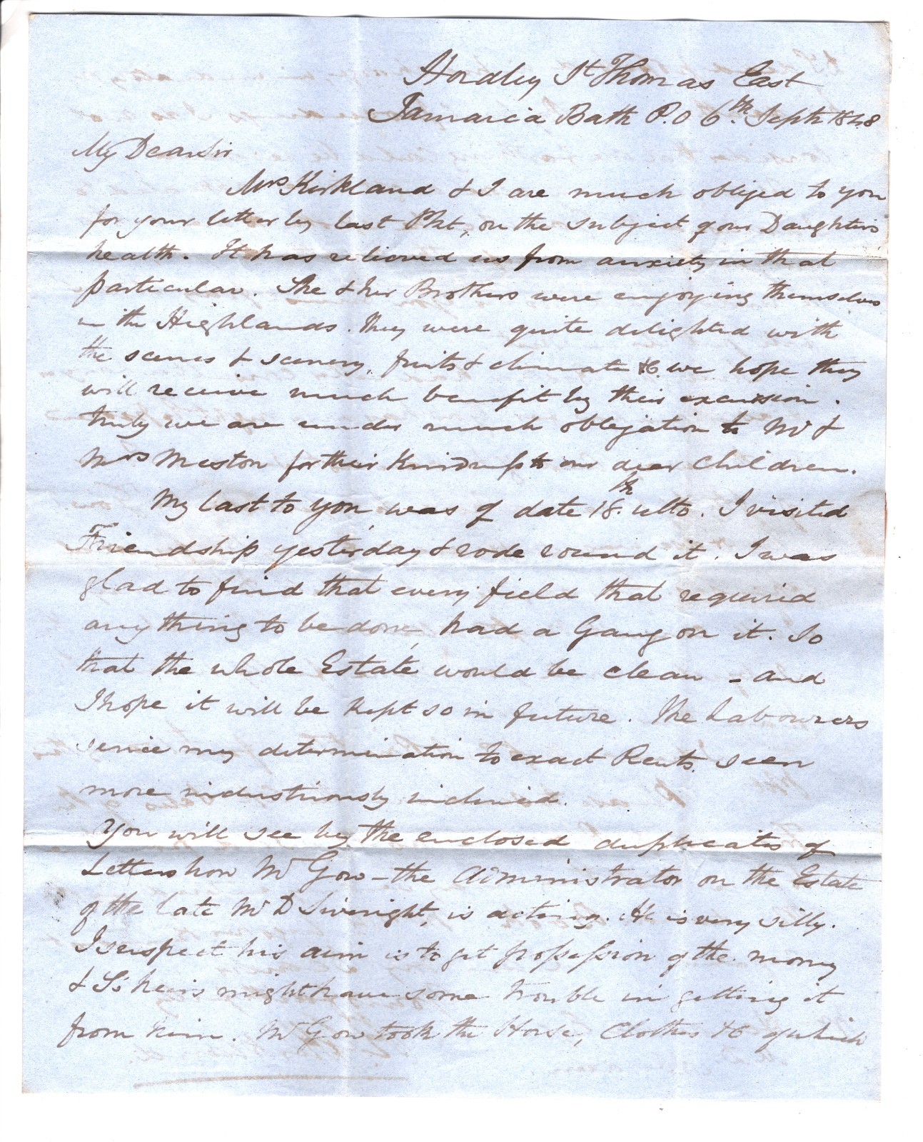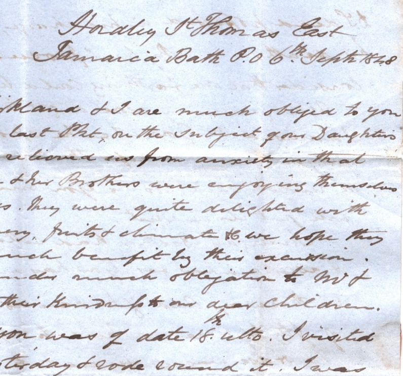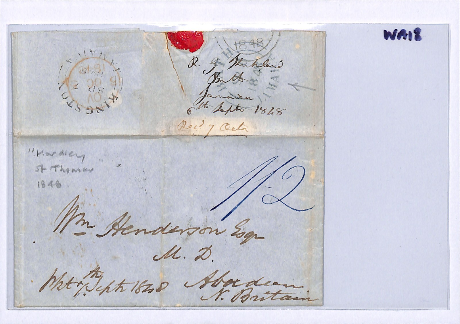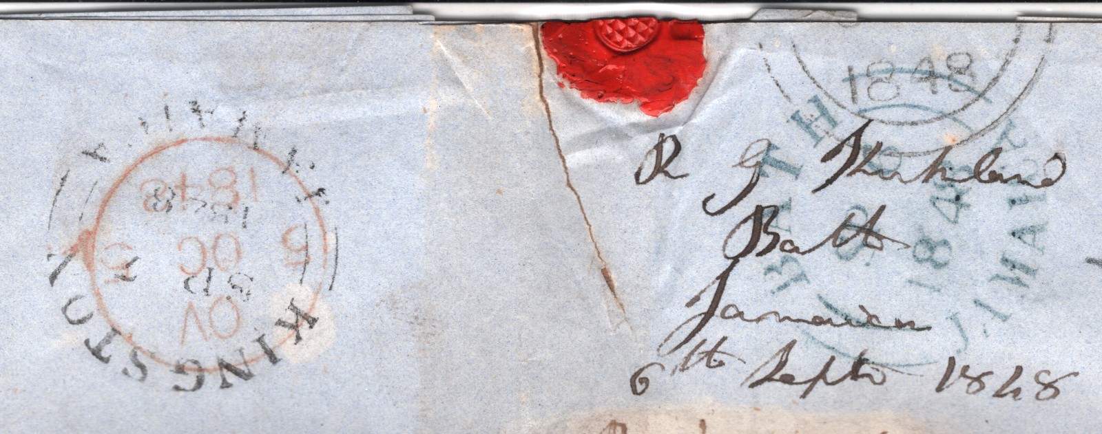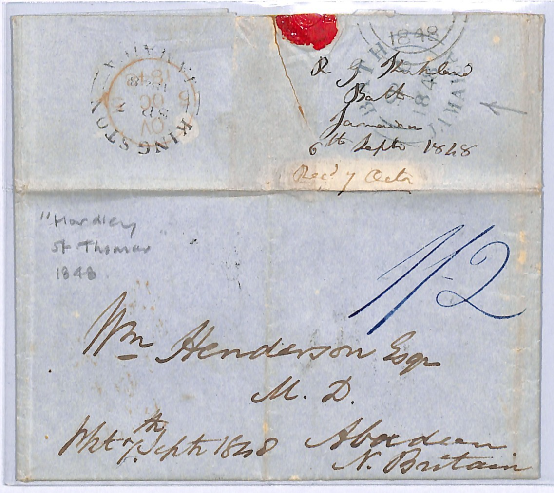 JAMAICA QV Cover *BATH* 1848 CDS TRANSATLANTIC Letter HARDLEY Aberdeen WA18