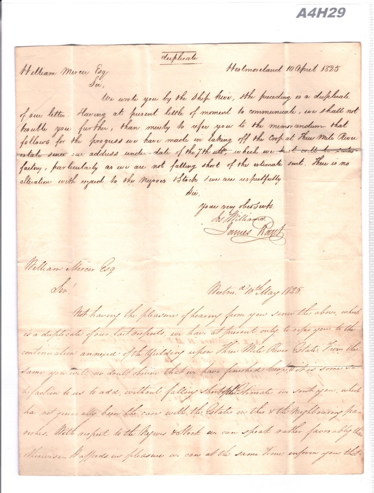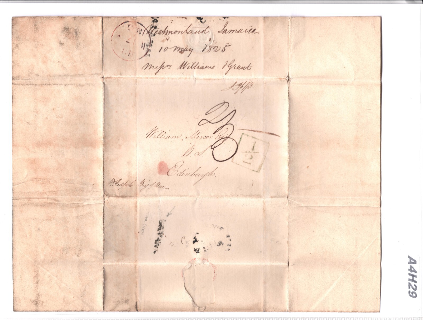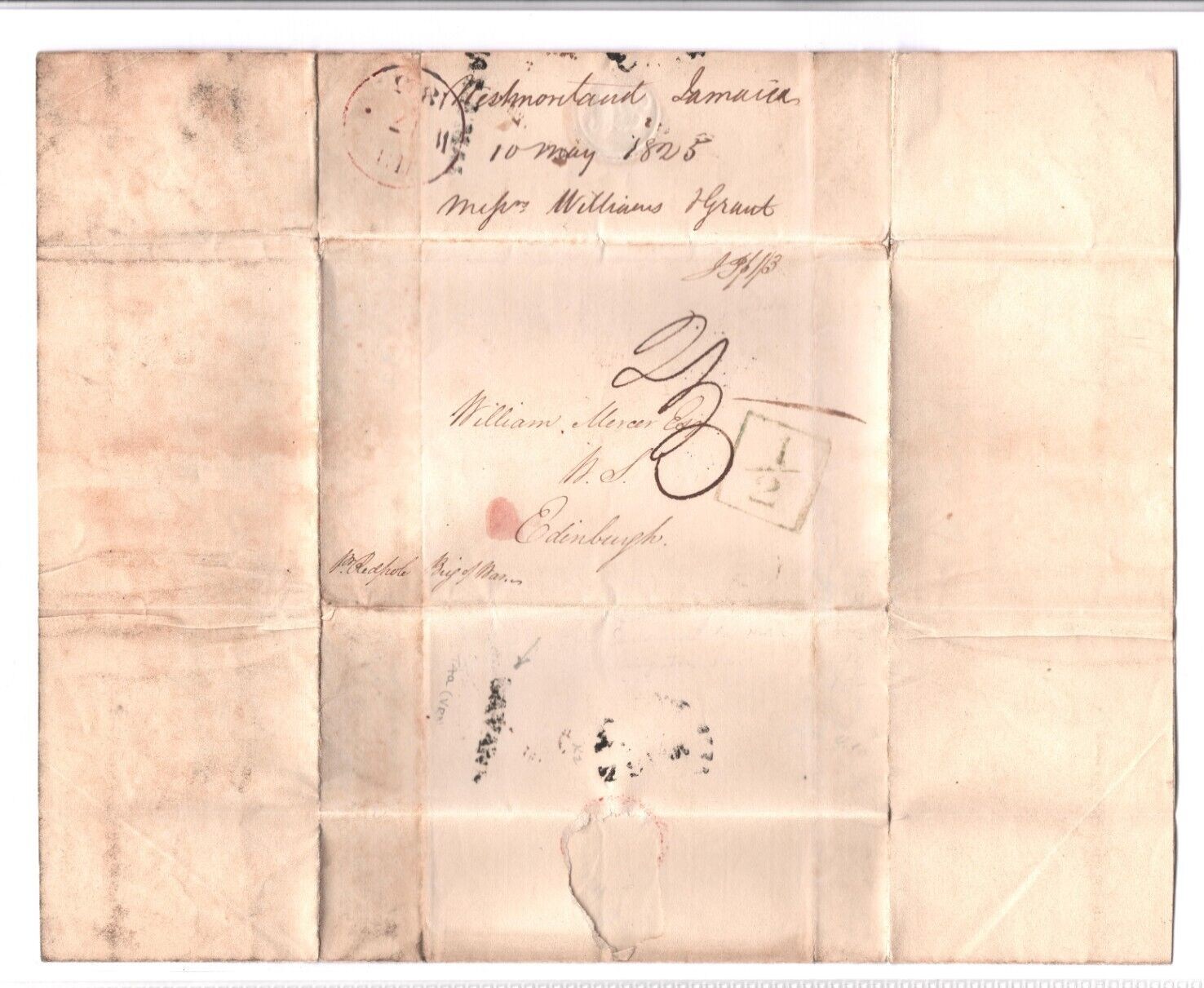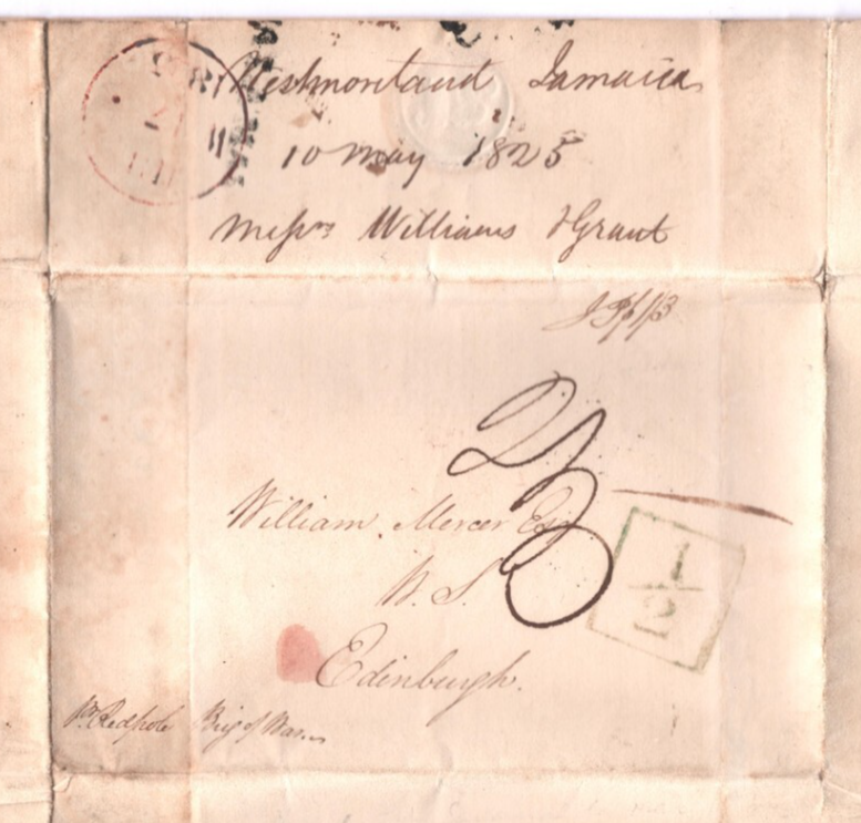 JAMAICA TRANSATLANTIC Cover *WESTMORELAND* Crops Letter 1825 Edin ADD HALF A4H29