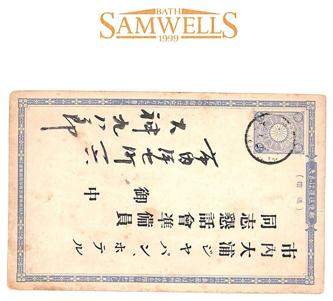 JAPAN Stationery Postcard *MESSAGE IN RED on BLACK WASH* 1890s? Unusual MS2577