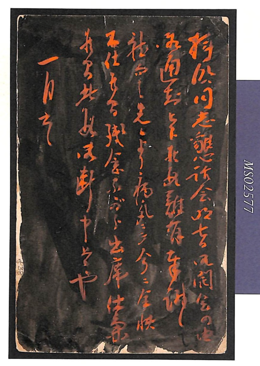 JAPAN Stationery Postcard *MESSAGE IN RED ON BLACK WASH* 1890s? Unusual MS2577