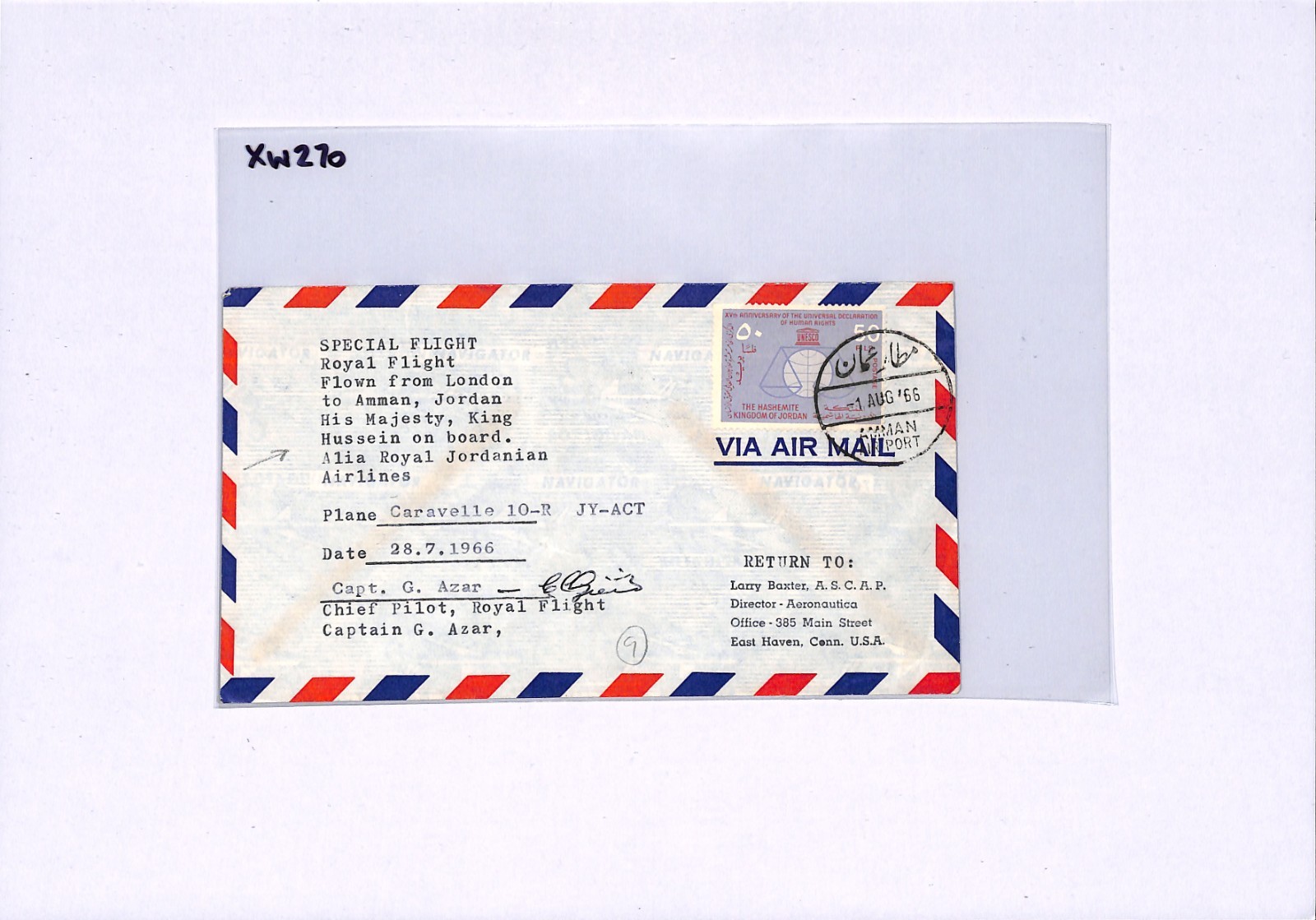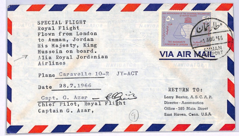 JORDAN Air Mail Cover SPECIAL FLIGHT *KING HUSSEIN* Pilot Signed 1966 USA XW270