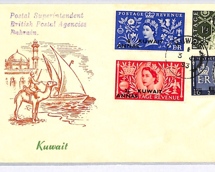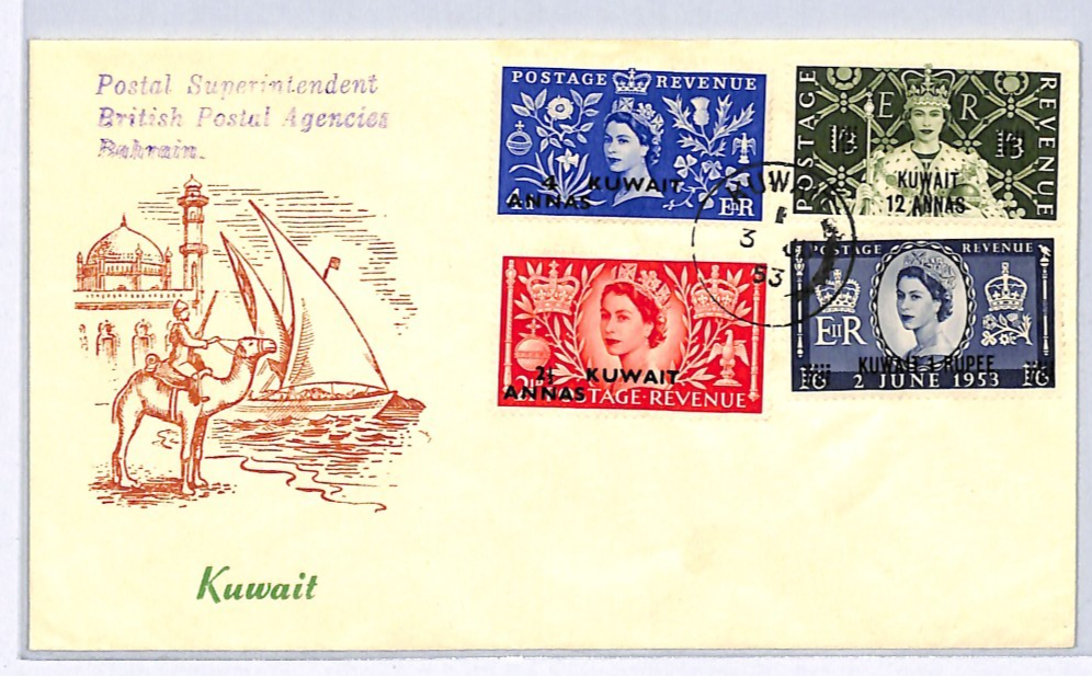 KUWAIT Overprint GB 1953 FDC QEII CORONATION Illustrated First Day Cover WY248