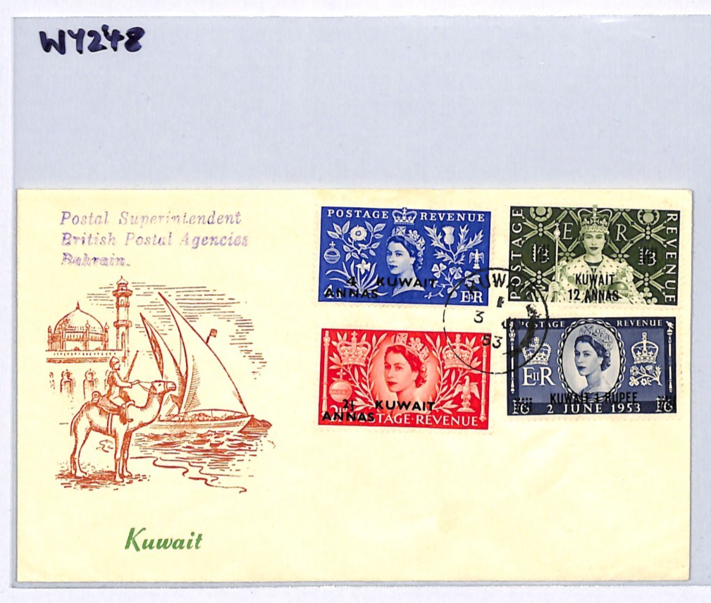 KUWAIT Overprint GB 1953 FDC QEII CORONATION Illustrated DEDICATED First Day Cover WY248
