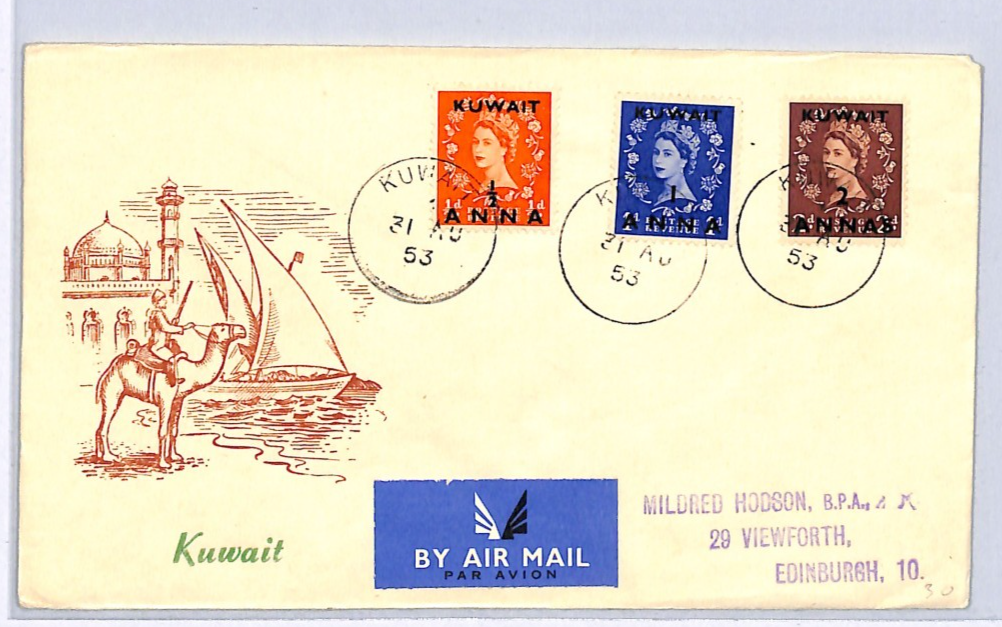 KUWAIT QEII FDC 1953 Illustrated First Day GB Scotland Edinburgh{Samwells}WY234
