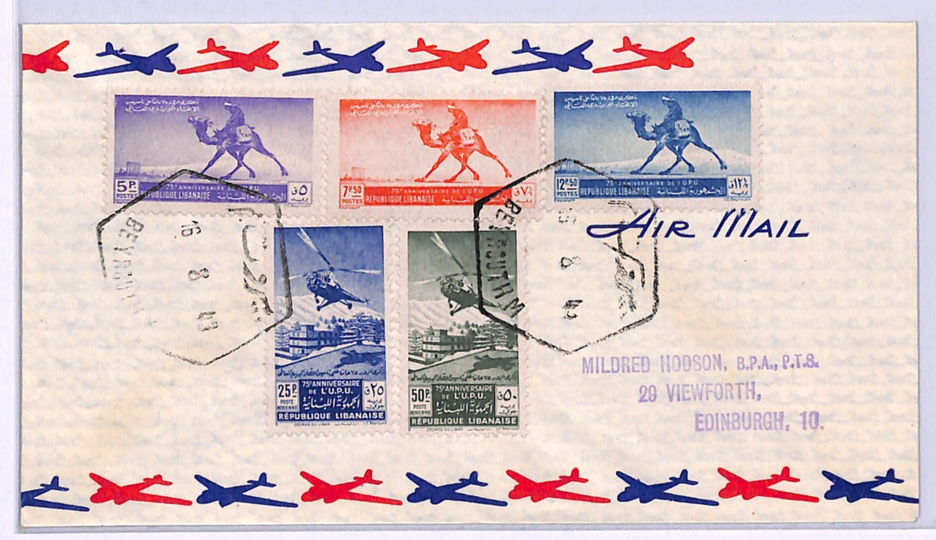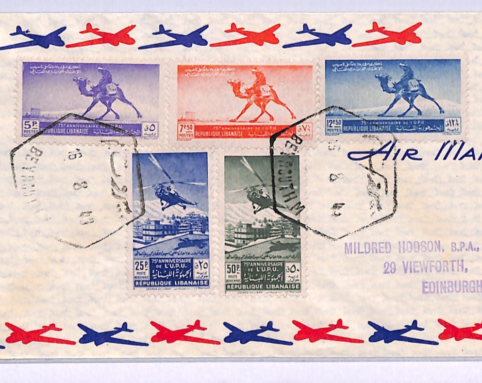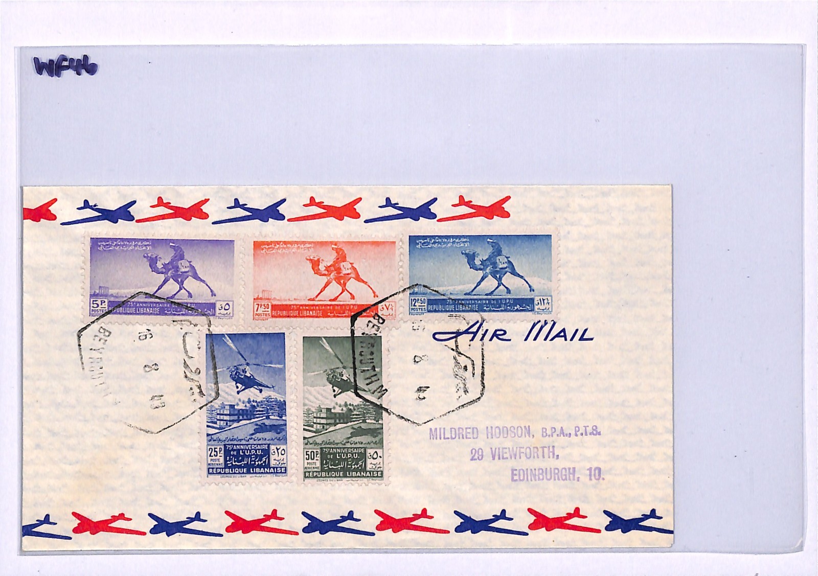LEBANON FDC 1949 UPU ANNIVERSARY Beirut GB Edinburgh{Samwells-covers}WF46