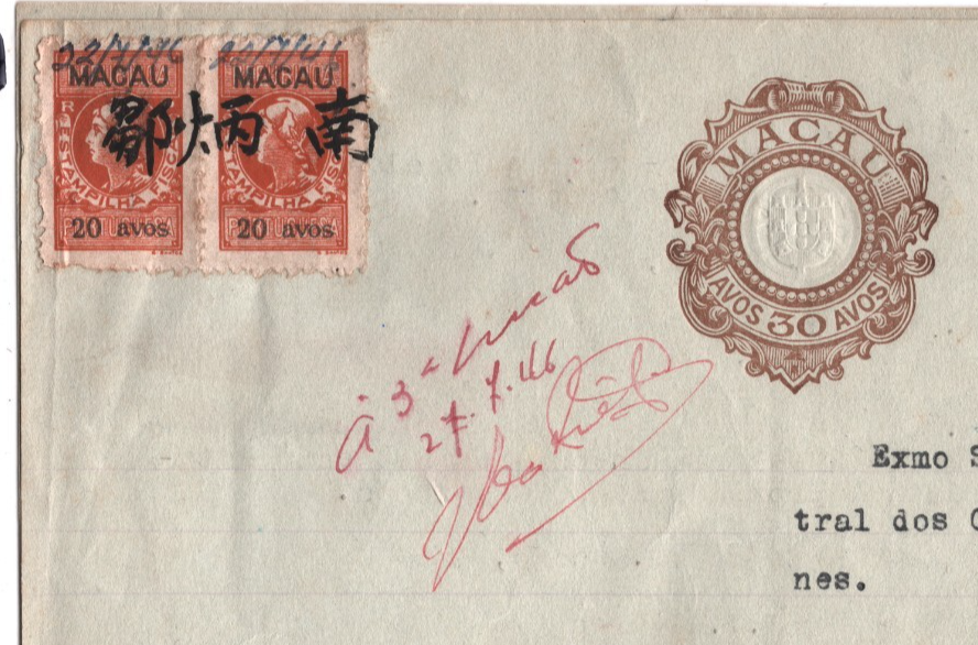 SCARCE USAGE. UNUSUAL MIXED FRANKING. Slight faults. HISTORICAL DOCUMENT relating to the INSTALLATION & RUNNING OF TELEPHONES in Macau. Overall Very Good/Fine for an item of this type & period. Please look at all the scans to help form your own opinion (WAF).