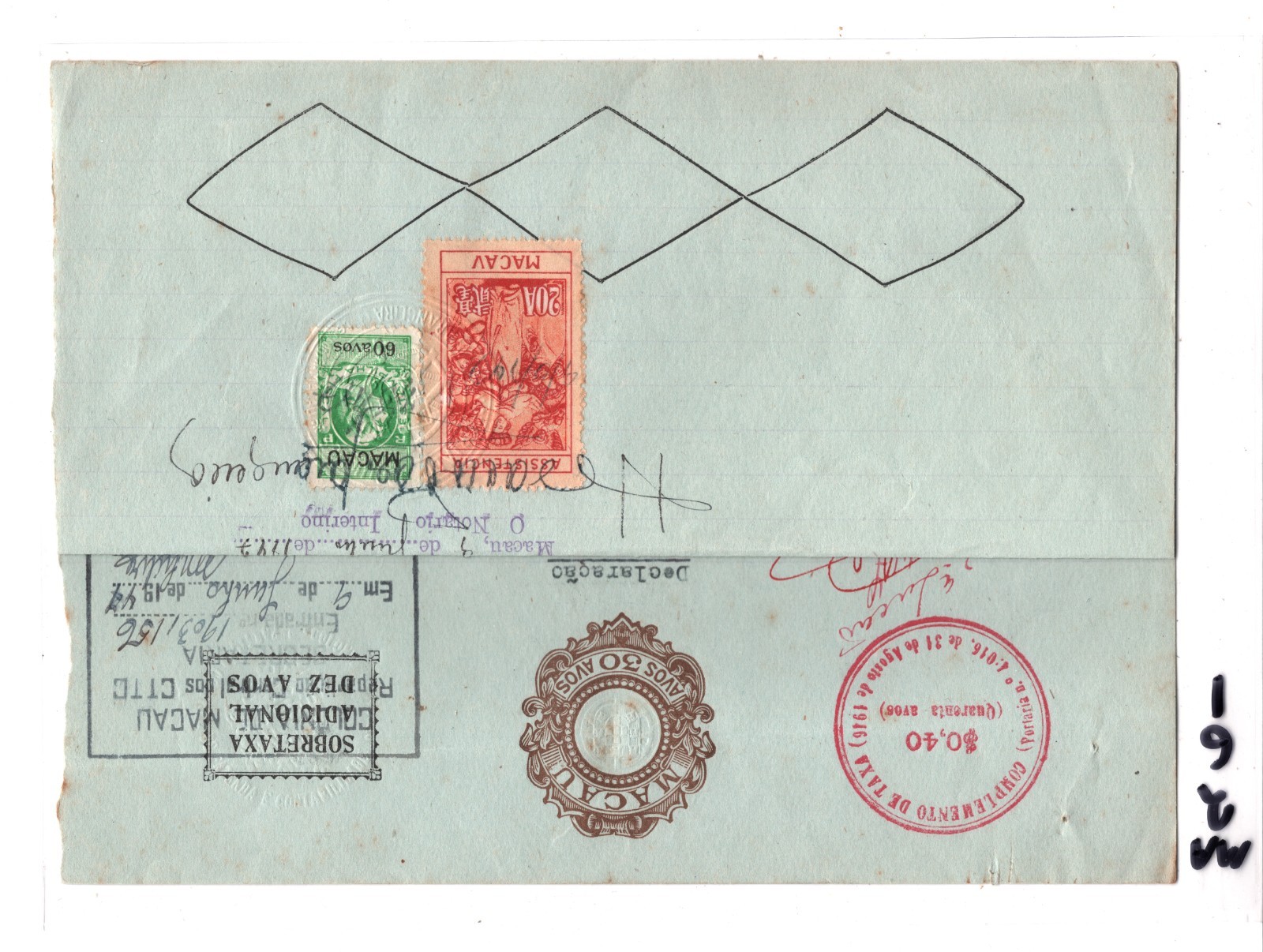 SCARCE USAGE. UNUSUAL MIXED FRANKING. Slight faults. HISTORICAL DOCUMENT relating to the INSTALLATION & RUNNING OF TELEPHONES in Macau. Overall Very Good/Fine for an item of this type & period. Please look at all the scans to help form your own opinion (WAF).