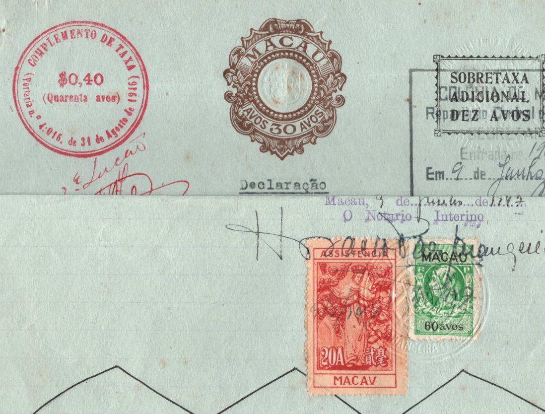 MACAU 30a Stationery Revenues 20a 60a Document Phone 1947 CHINA/PORTUGAL MA261