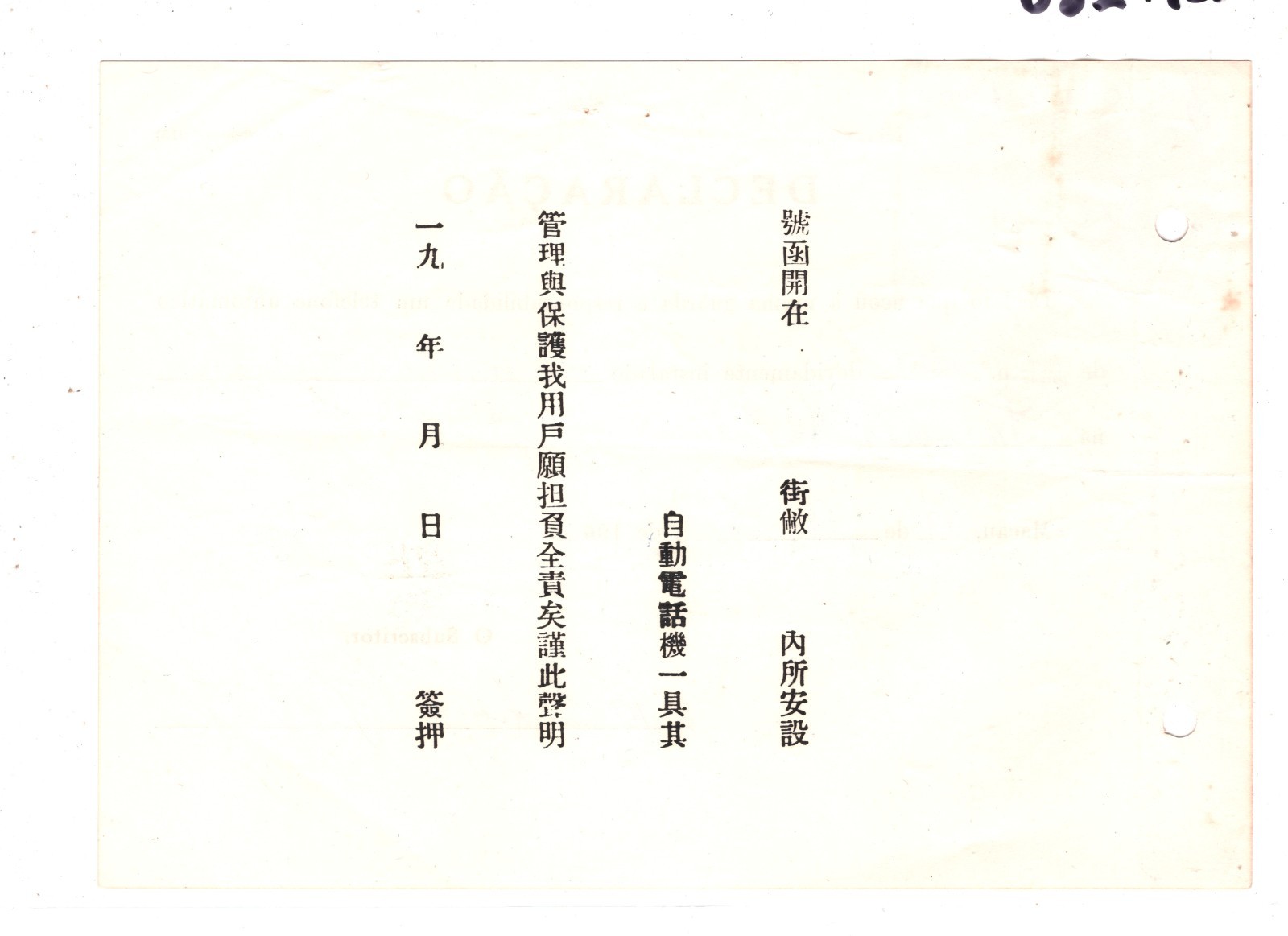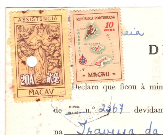 SCARCE USAGE. UNUSUAL MIXED FRANKING. Faults. HISTORICAL DOCUMENT relating to the INSTALLATION & RUNNING OF TELEPHONES in Macau. Overall Good/VG for an item of this type & period. Please look at all the scans to help form your own opinion (WAF).