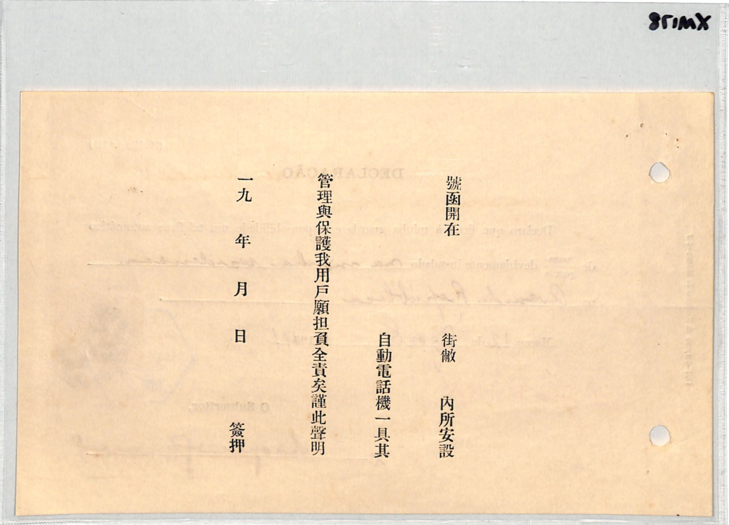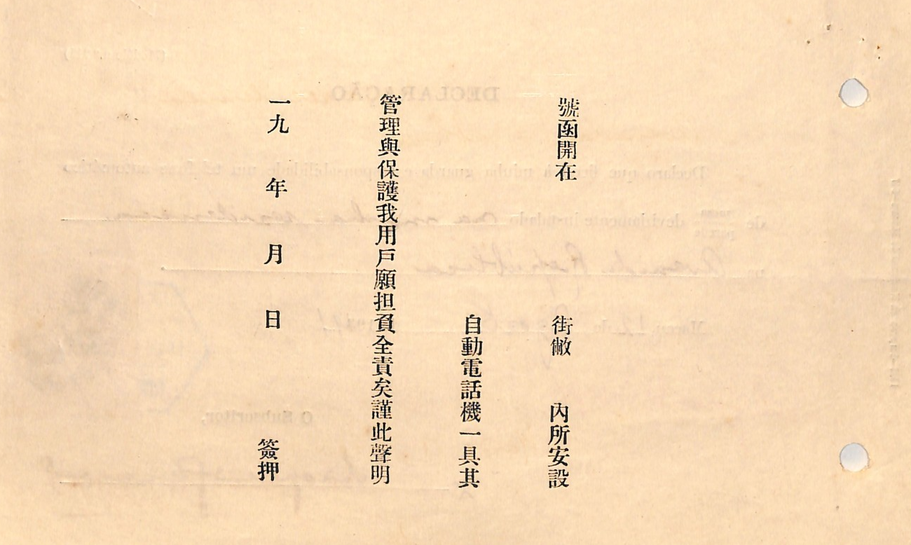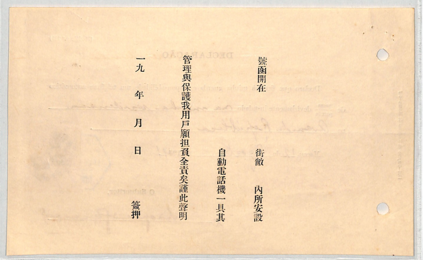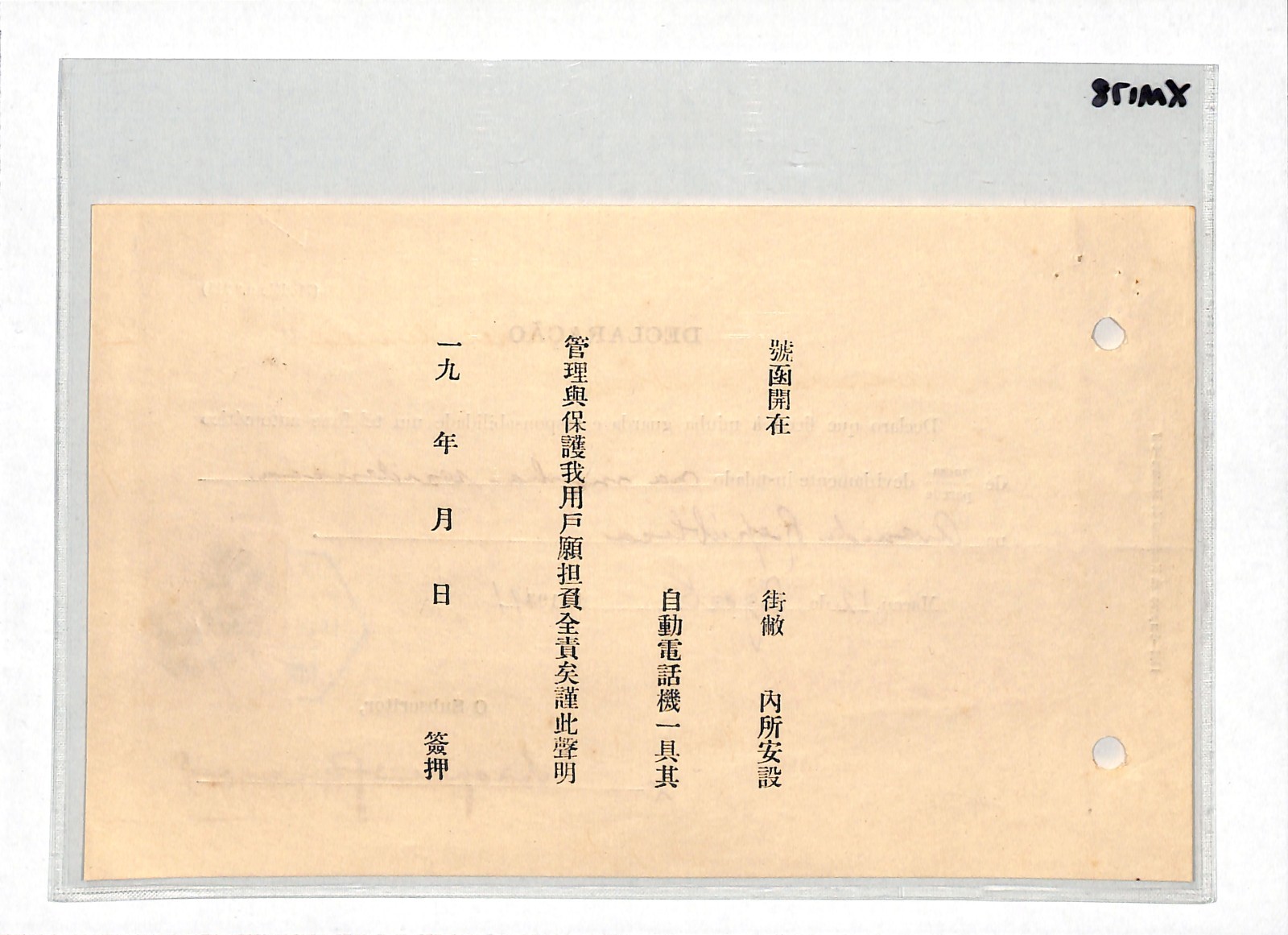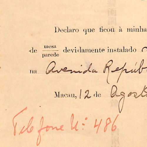 MOST UNUSUAL FISCAL USAGE of *AIR MAIL* Postage Stamp. HISTORICAL DOCUMENT relating to the INSTALLATION & RUNNING OF TELEPHONES in Macau. Overall Very Fine for an item of this type & period. Please look at all the scans to help form your own opinion (WAF).