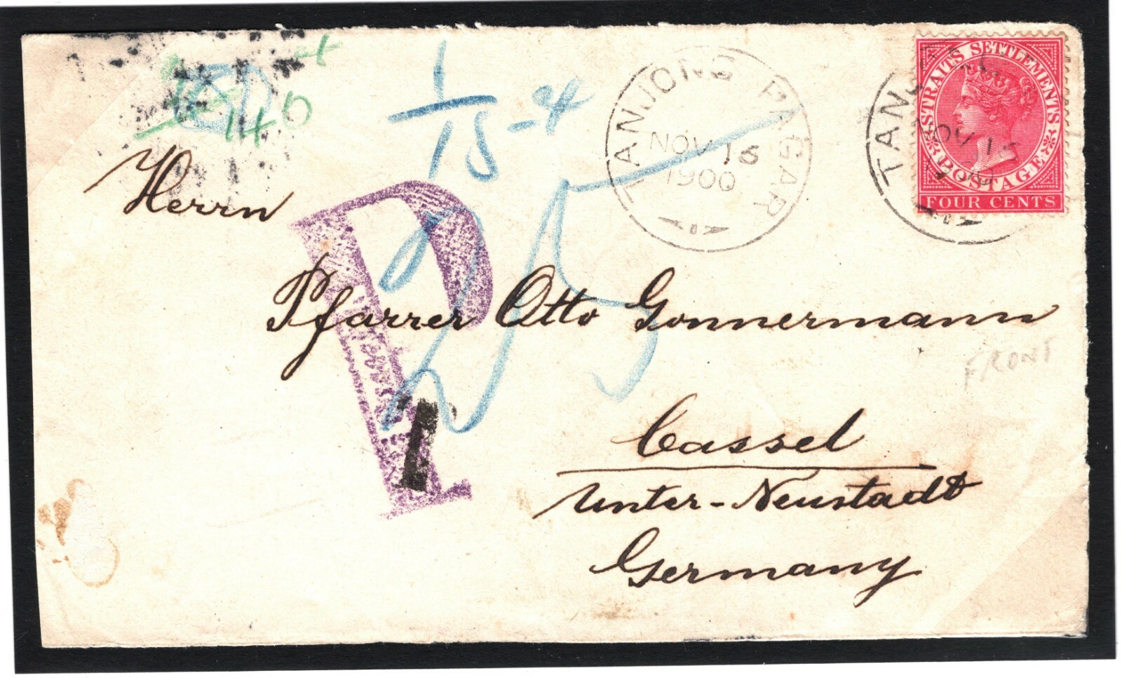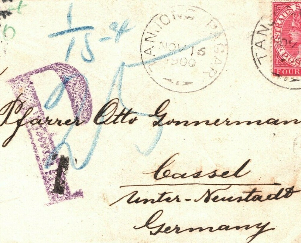 MALAYA STRAITS SINGAPORE Tanjong Pagar UNDERPAID 1900 DISTINCTIVE *P* Taxe MC41