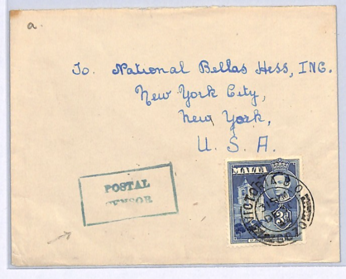 MALTA WW2 Cover *GOZO* 1944 CDS KGVI 3d Rate POSTAL CENSOR Framed New York XK98