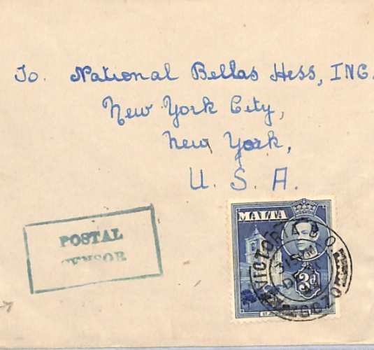 MALTA WW2 Cover *GOZO* 1944 CDS KGVI 3d Rate POSTAL CENSOR Framed New York USA Mail XK98