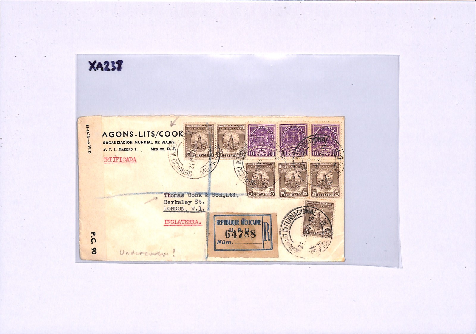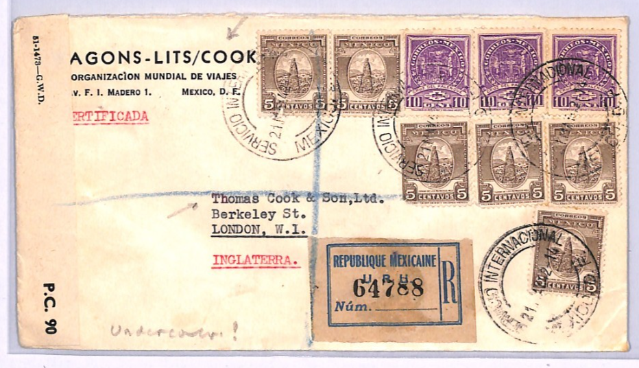 MEXICO WW2 Cover UNDERCOVER ADDRESS THOS COOK GB London Registered 1942 XA238