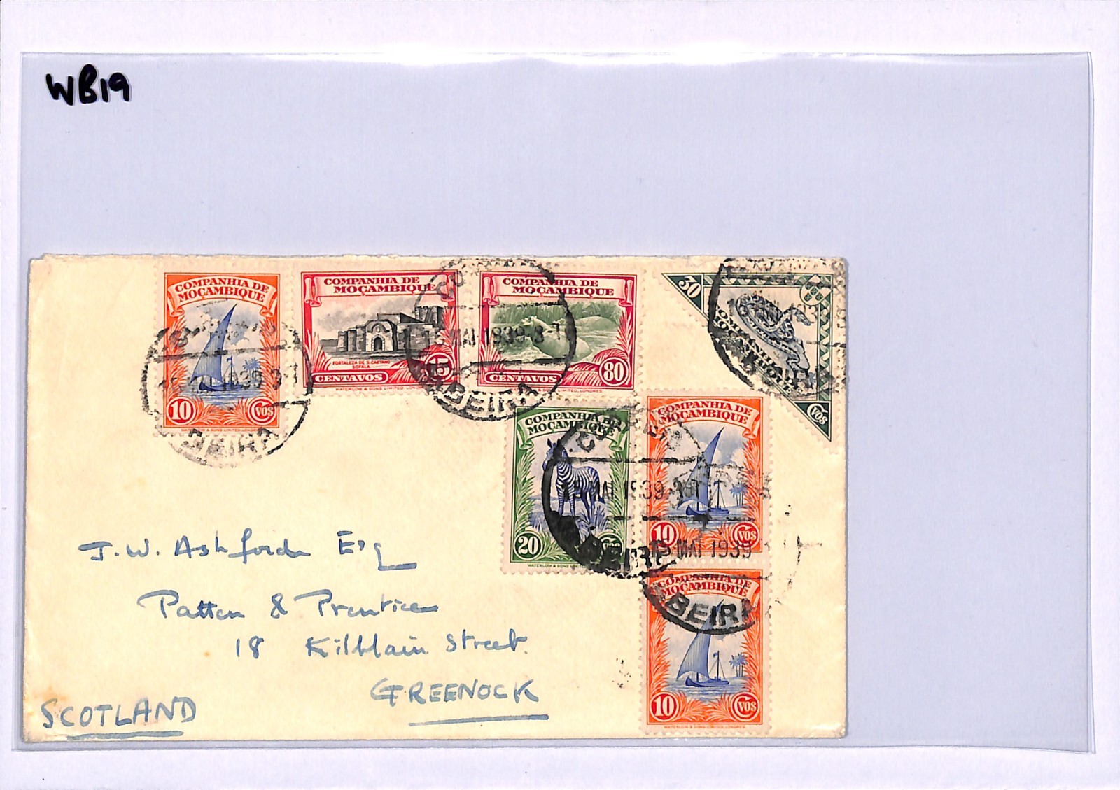 MOZAMBIQUE Cover Beira GB Scotland Greenock 1939{samwells-covers}WB19