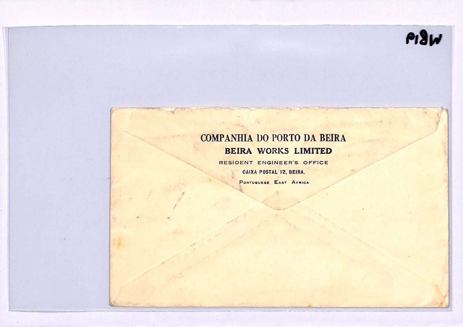 MOZAMBIQUE COMPANY Commercial Cover Beira ENGINEER 1939 Scotland Greenock WB19