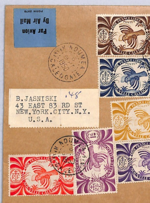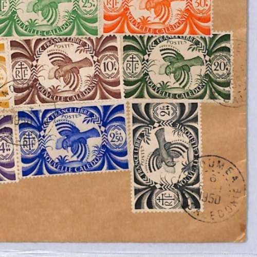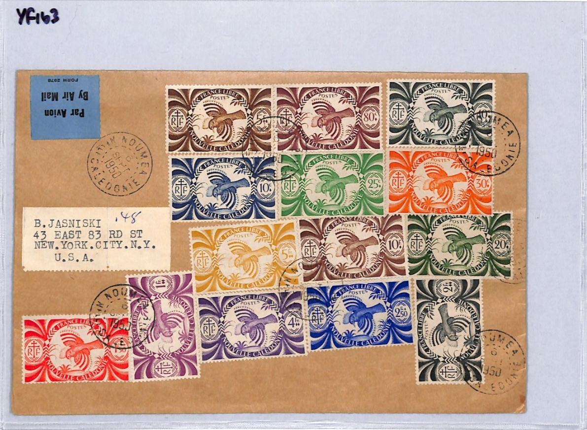 NEW CALEDONIA Cover *FRANCE LIBRE* Birds POSTAGE Set{14) Colonies 1950 USA YF163