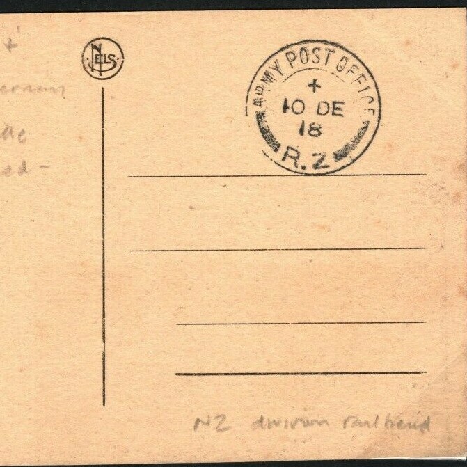 NEW ZEALAND Card Post-WW1 SUPERB STRIKE *APO/RZ* Division Railhead First Day in GERMANY 1918 38c.13