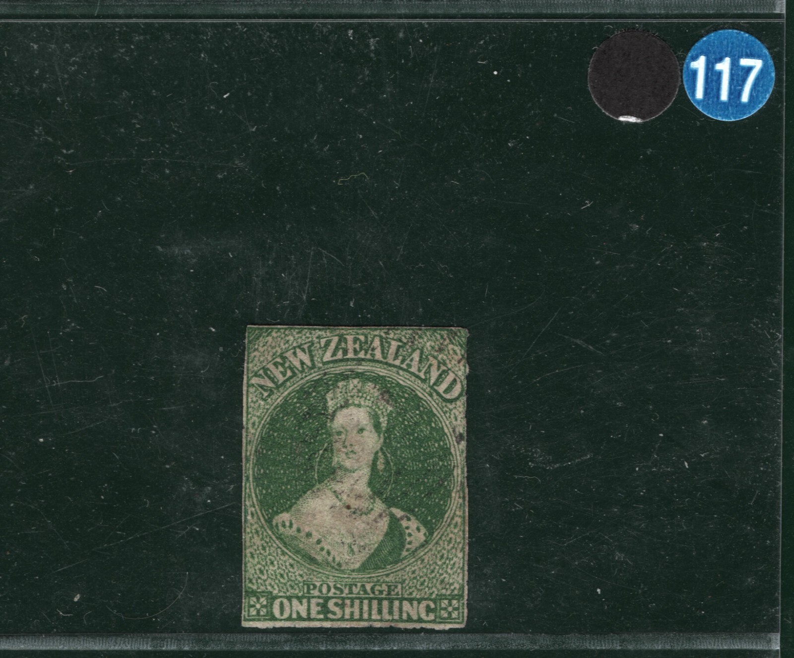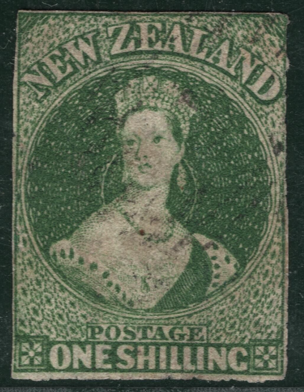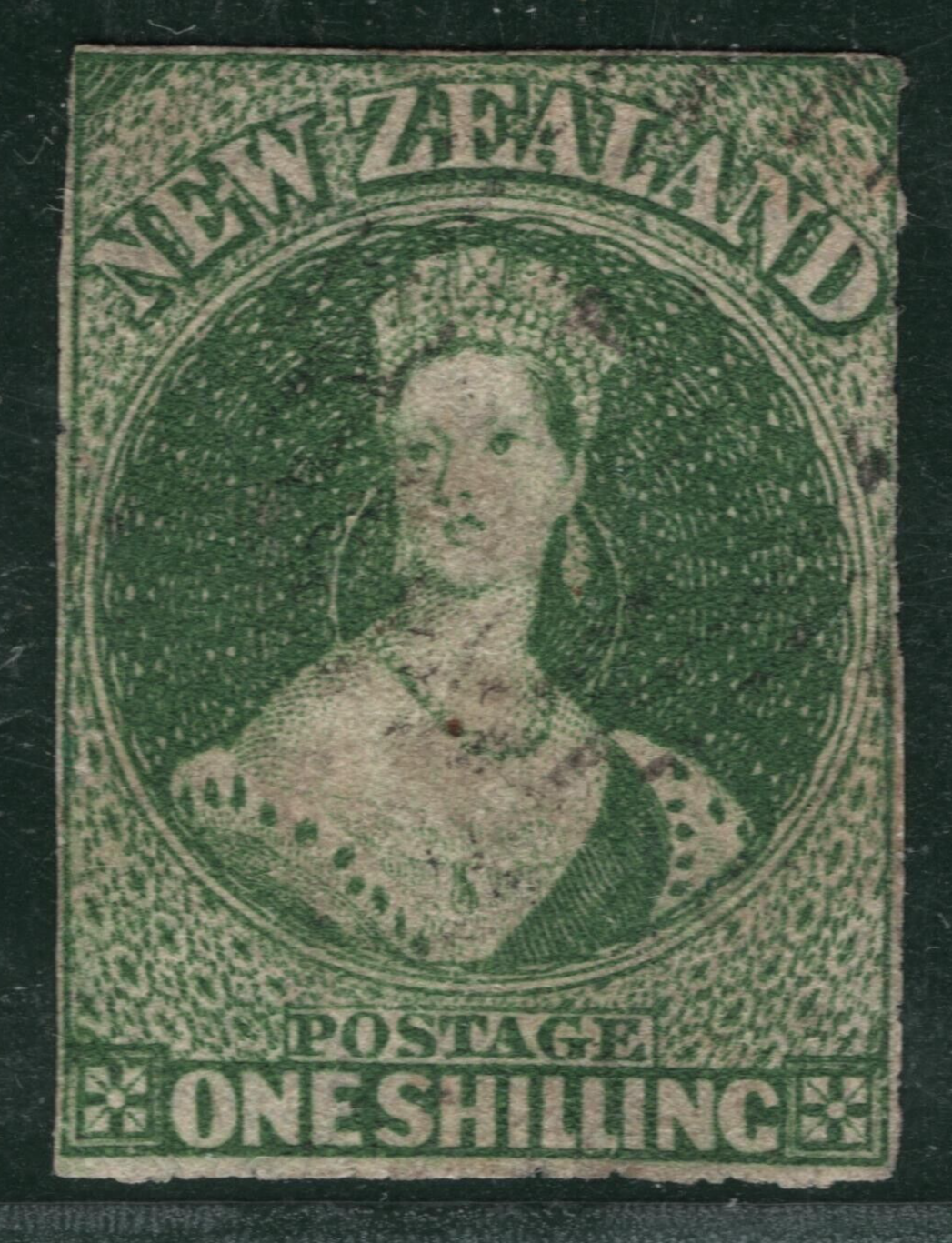 NEW ZEALAND QV Chalon SG.17 1s Blue-Green (1858) NO WMK Used Cat £1,800-BBLUE117
